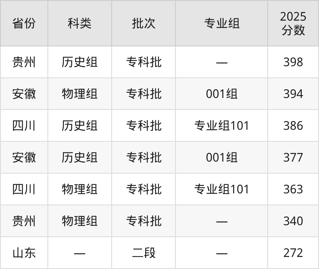 而贵州地区历史组考生的分数门槛最高,2025年商丘职业技术学院在贵州招生最低分为398分,考生至少要超专科线218分才有可能被录取。