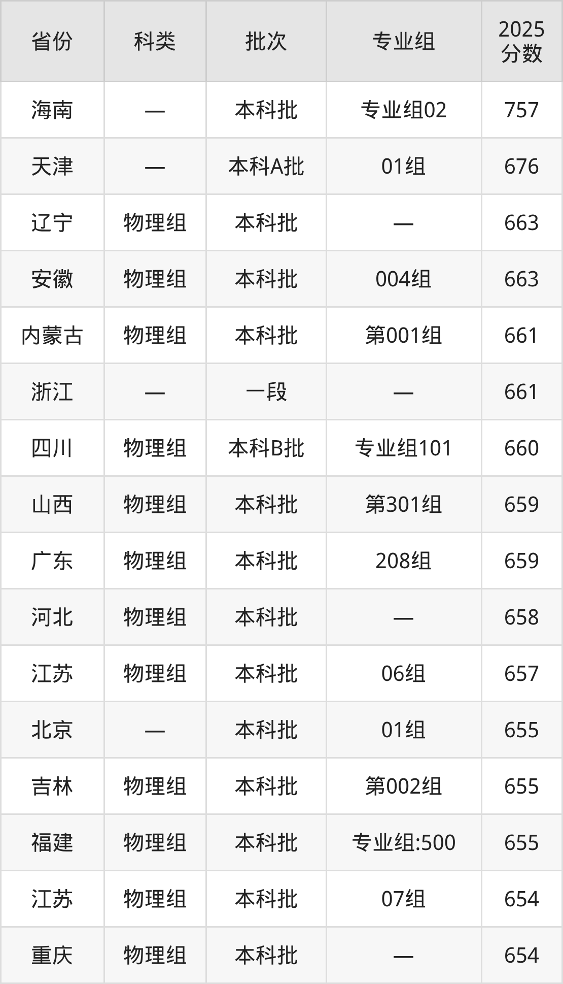 下面是东南大学2025年在全国各省的录取分数线一览表,供参考: