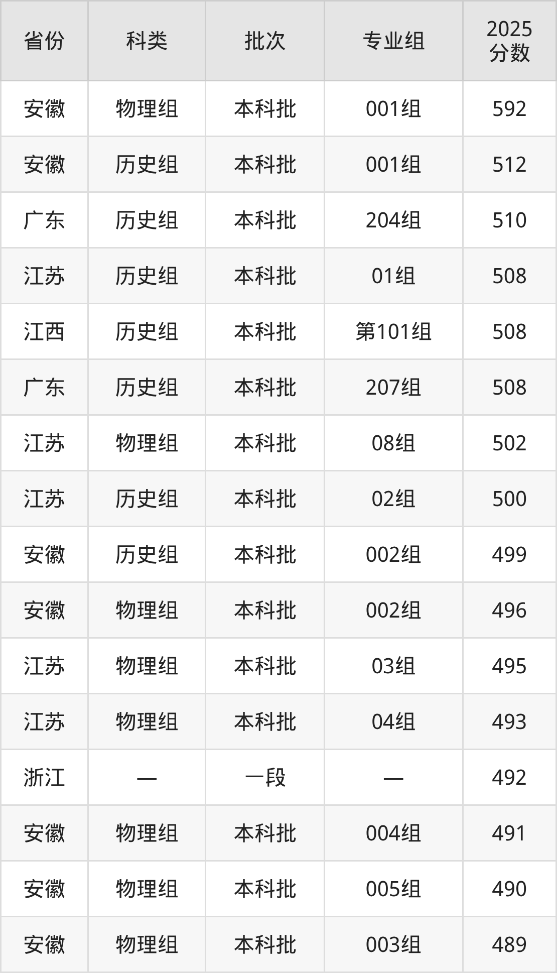 而安徽地区物理组考生的分数门槛最高,2025年江苏大学京江学院001组在安徽招生最低分为592分,考生至少要超本科线131分才有可能被录取。
