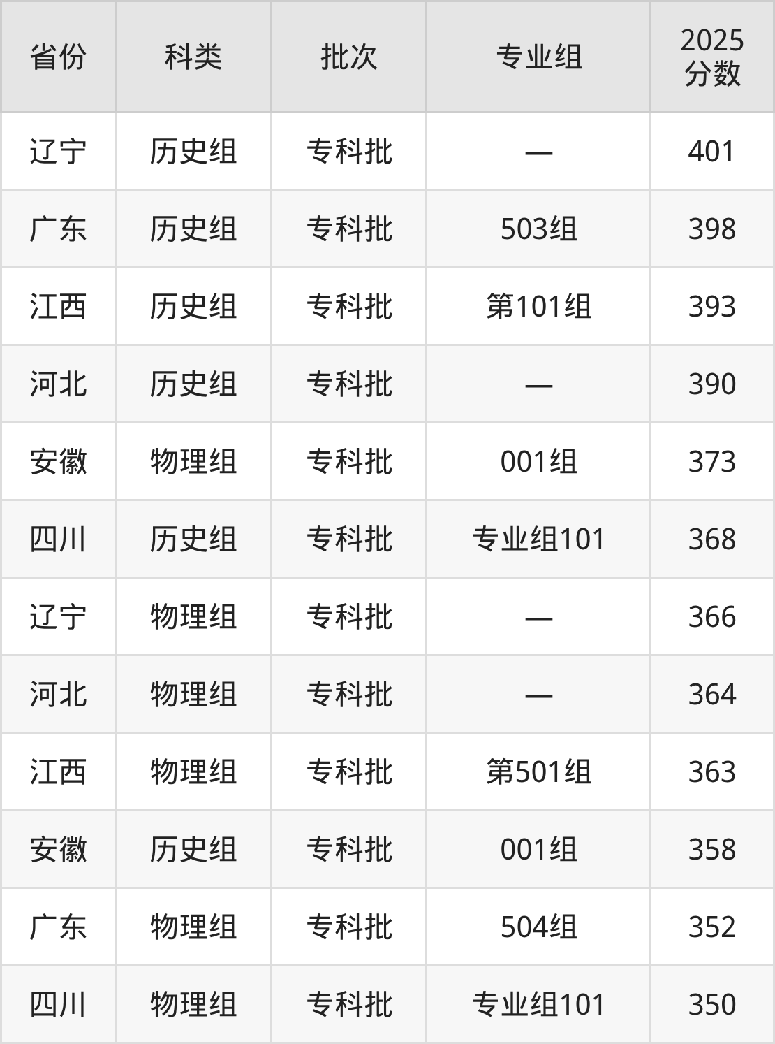 而辽宁地区历史组考生的分数门槛最高,2025年河南水利与环境职业学院在辽宁招生最低分为401分,考生至少要超专科线251分才有可能被录取。