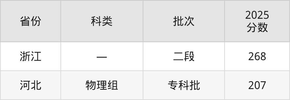 而浙江地区考生的分数门槛最高,2025年广西演艺职业学院在浙江招生最低分为268分,考生至少要超二段线0分才有可能被录取。
