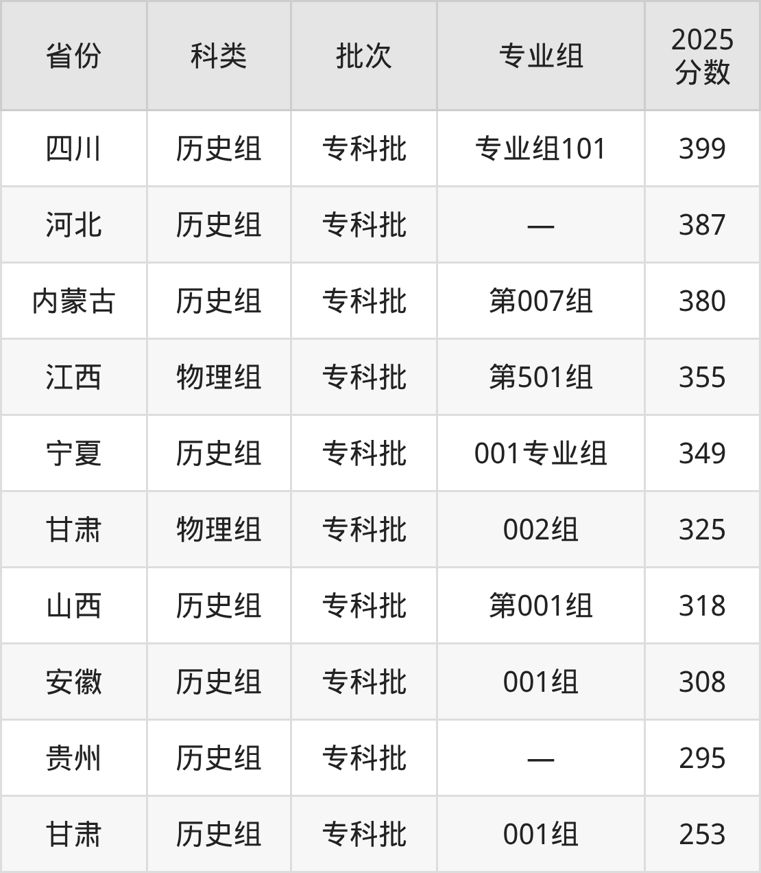 而四川地区历史组考生的分数门槛最高,2025年陕西艺术职业学院专业组101在四川招生最低分为399分,考生至少要超专科线249分才有可能被录取。
