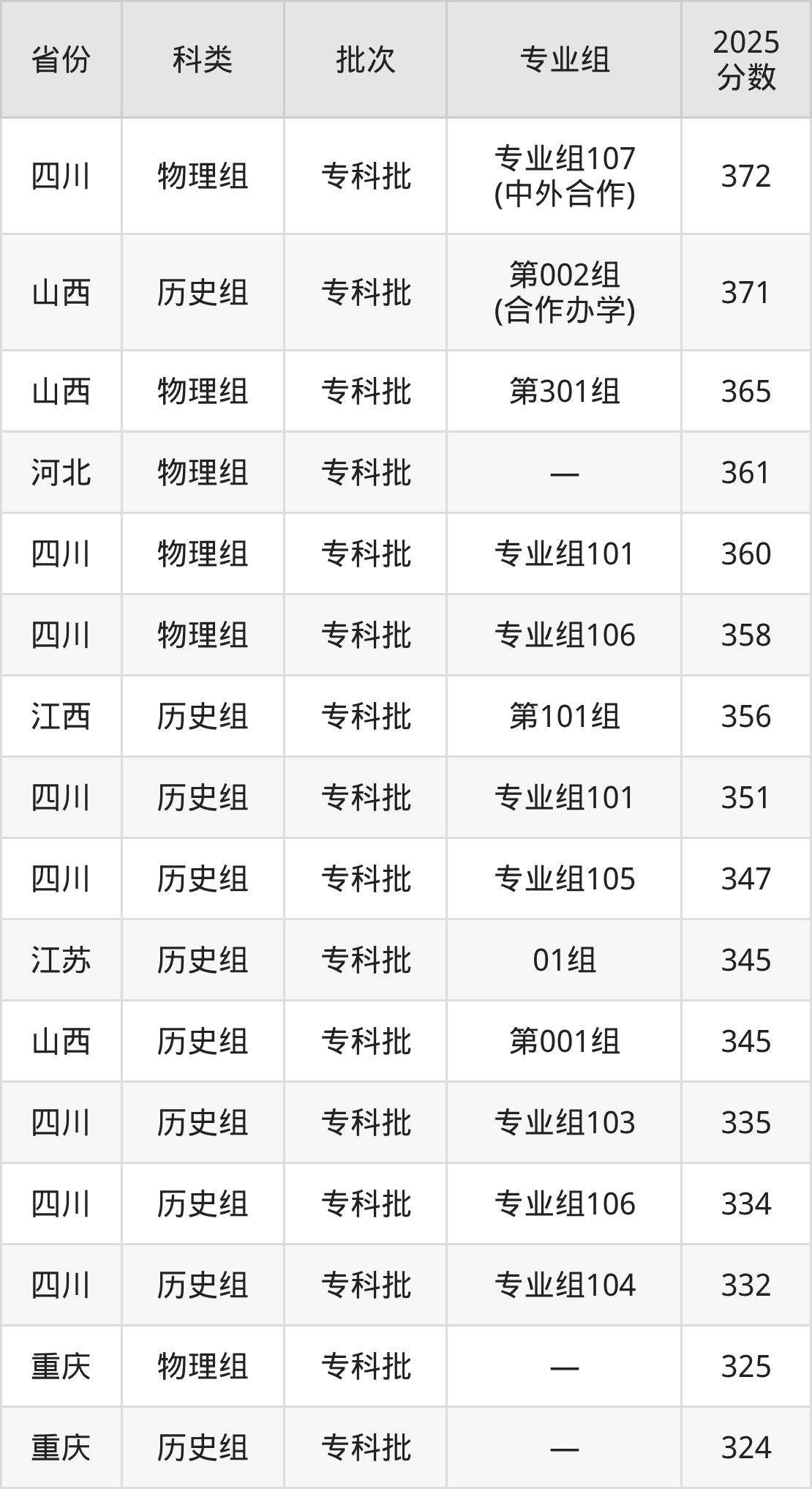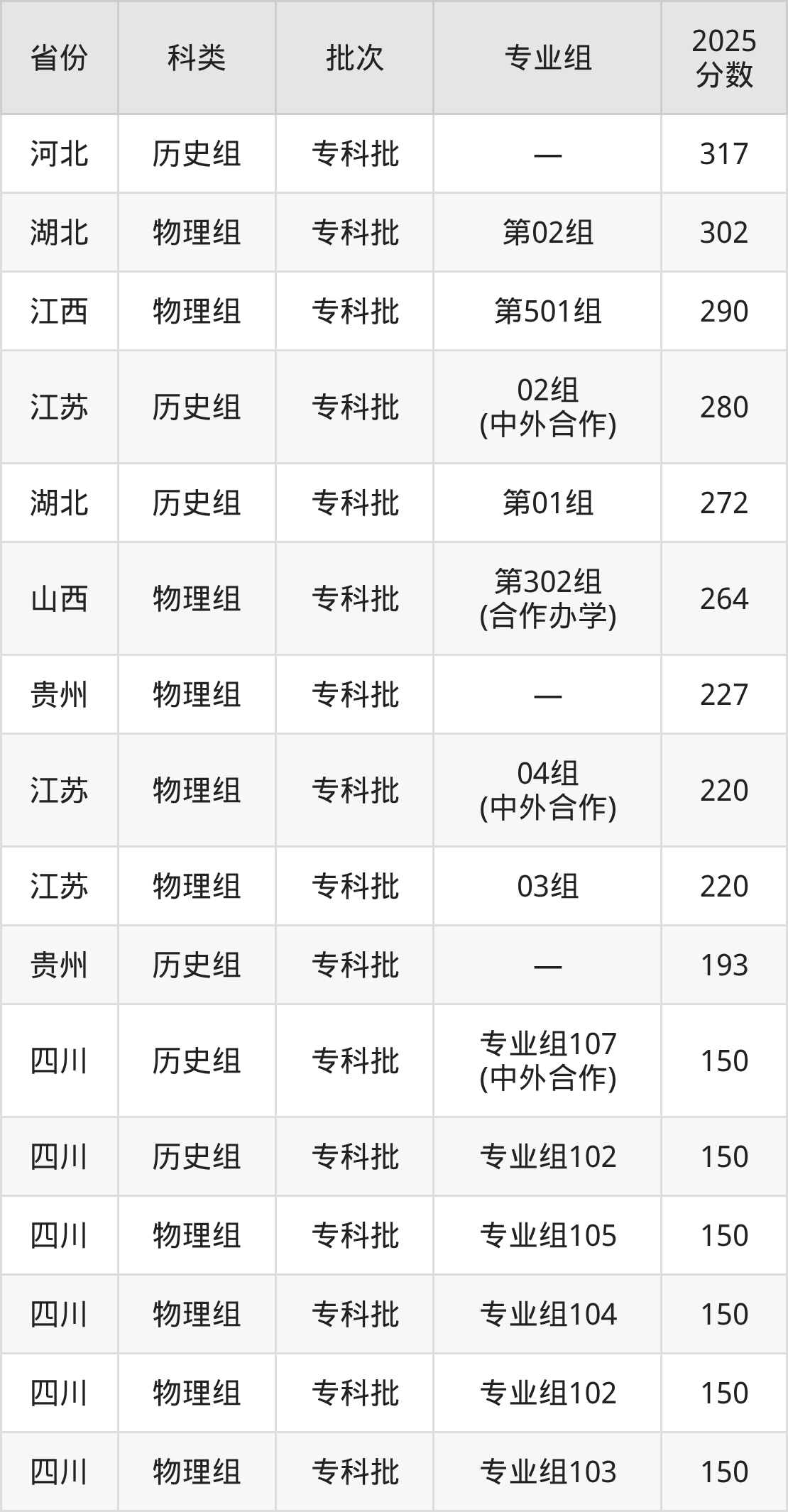 下面是重庆科创职业学院2025年在全国各省的录取分数线一览表,供参考: