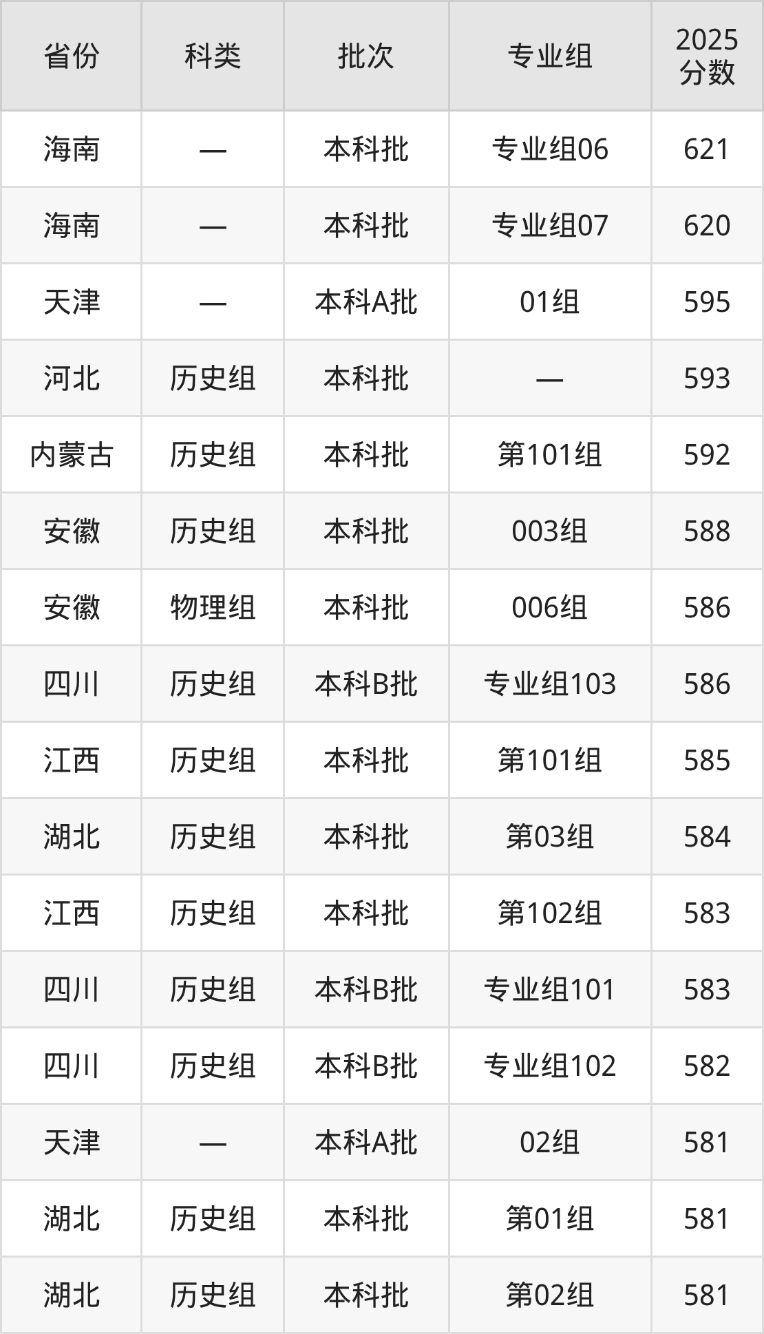 而海南地区考生的分数门槛最高,2025年中南民族大学专业组06在海南招生最低分为621分,考生至少要超本科线141分才有可能被录取。
