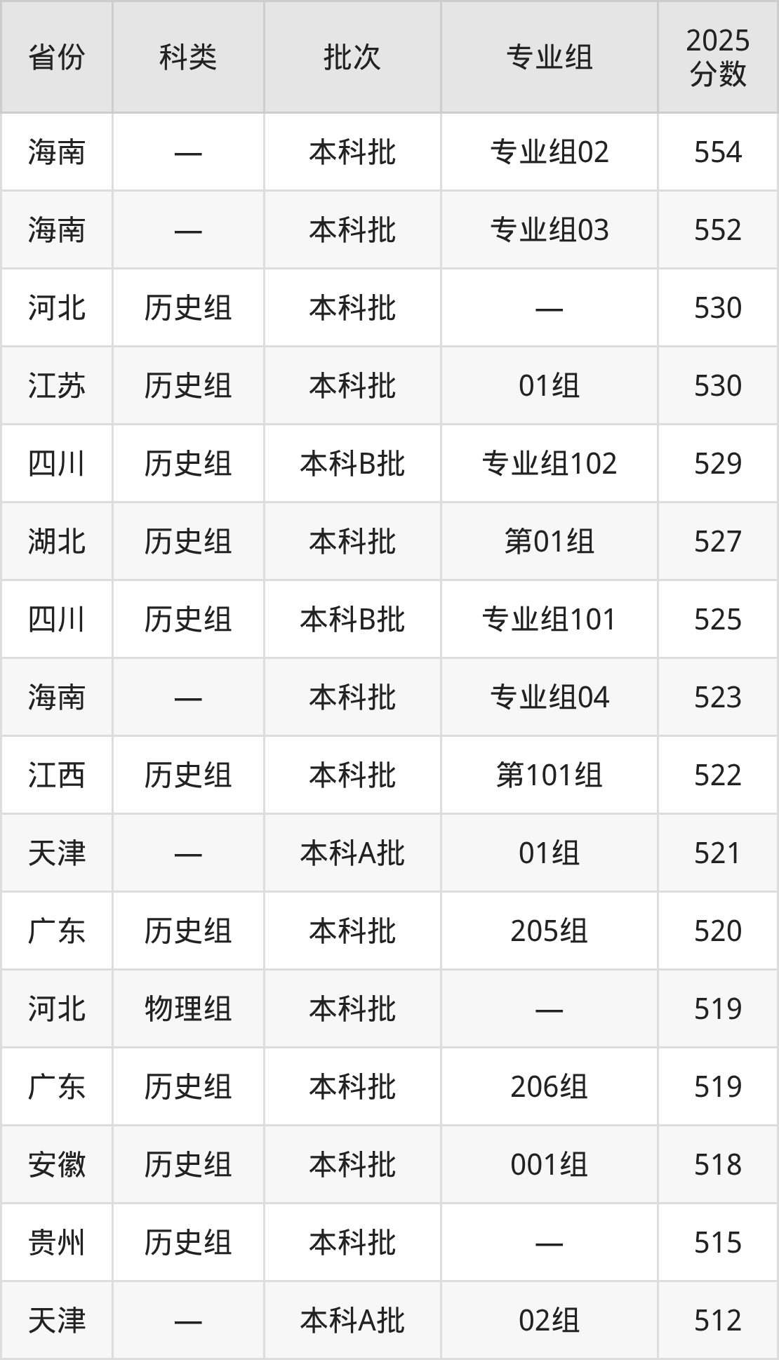 而海南地区考生的分数门槛最高,2025年河南科技学院专业组02在海南招生最低分为554分,考生至少要超本科线74分才有可能被录取。