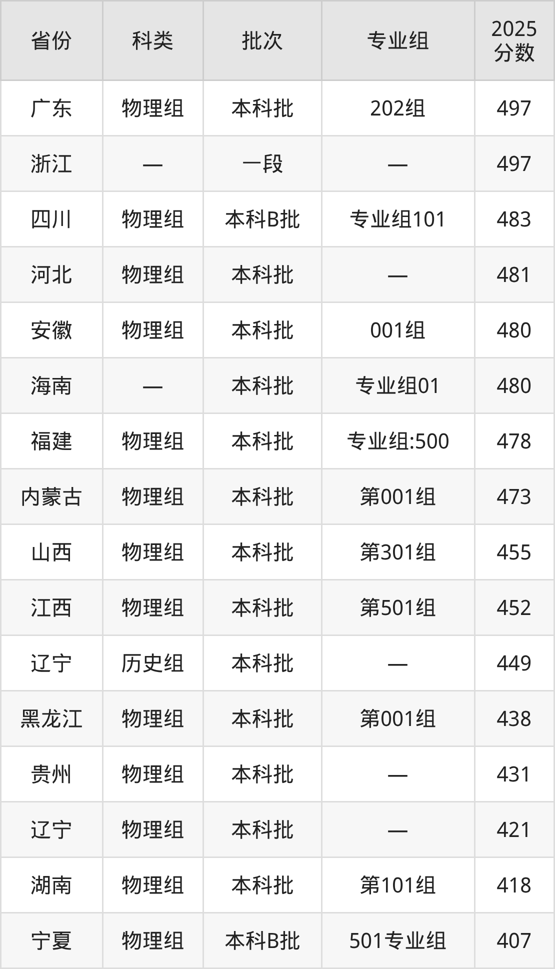 而广东地区物理组考生的分数门槛最高,2025年辽宁中医药大学杏林学院202组在广东招生最低分为497分,考生至少要超本科线61分才有可能被录取。