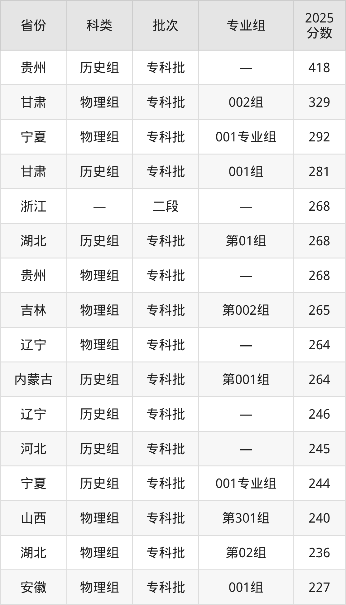 而贵州地区历史组考生的分数门槛最高,2025年烟台黄金职业学院在贵州招生最低分为418分,考生至少要超专科线238分才有可能被录取。