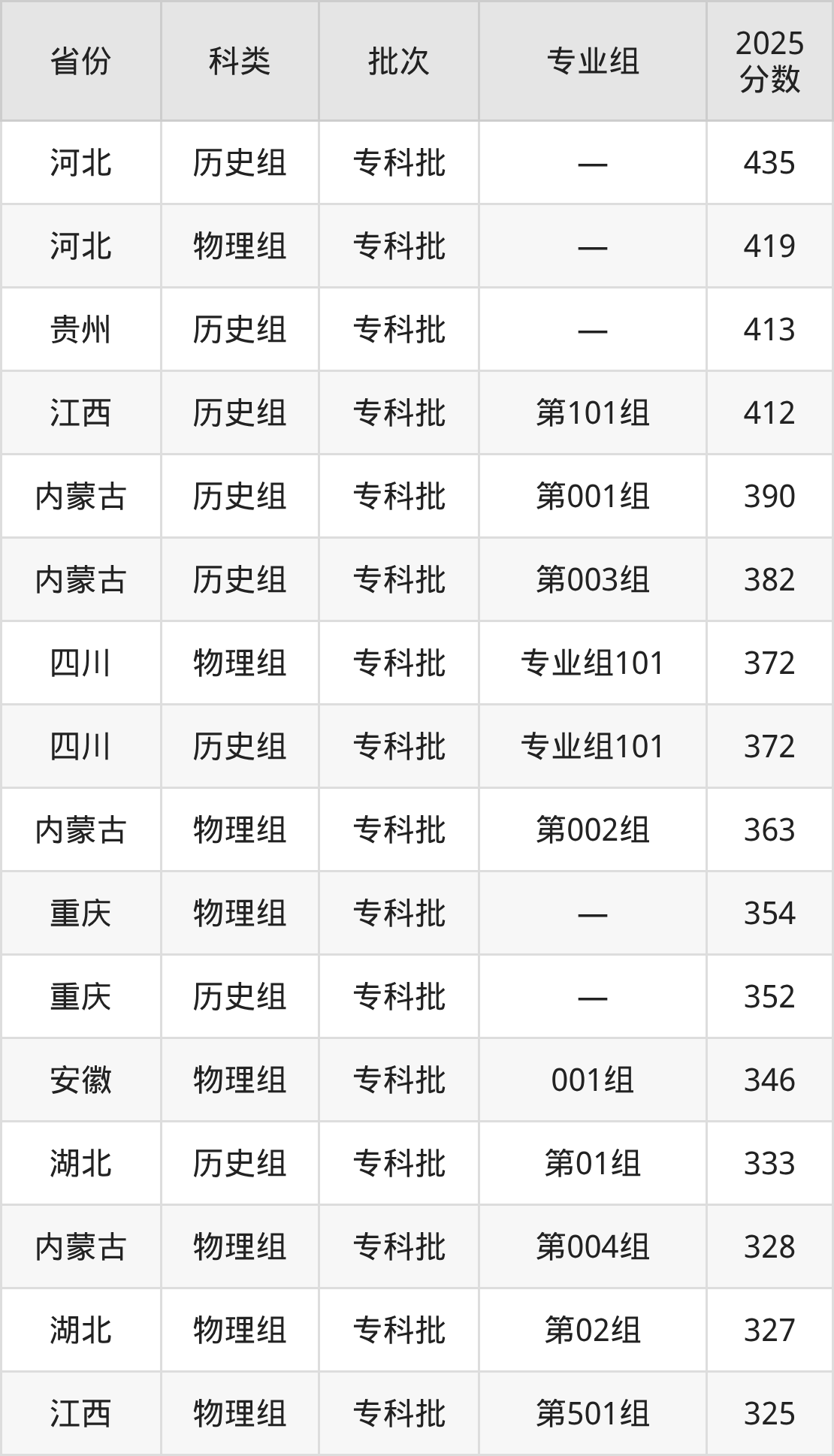 而河北地区历史组考生的分数门槛最高,2025年平顶山工业职业技术学院在河北招生最低分为435分,考生至少要超专科线235分才有可能被录取。