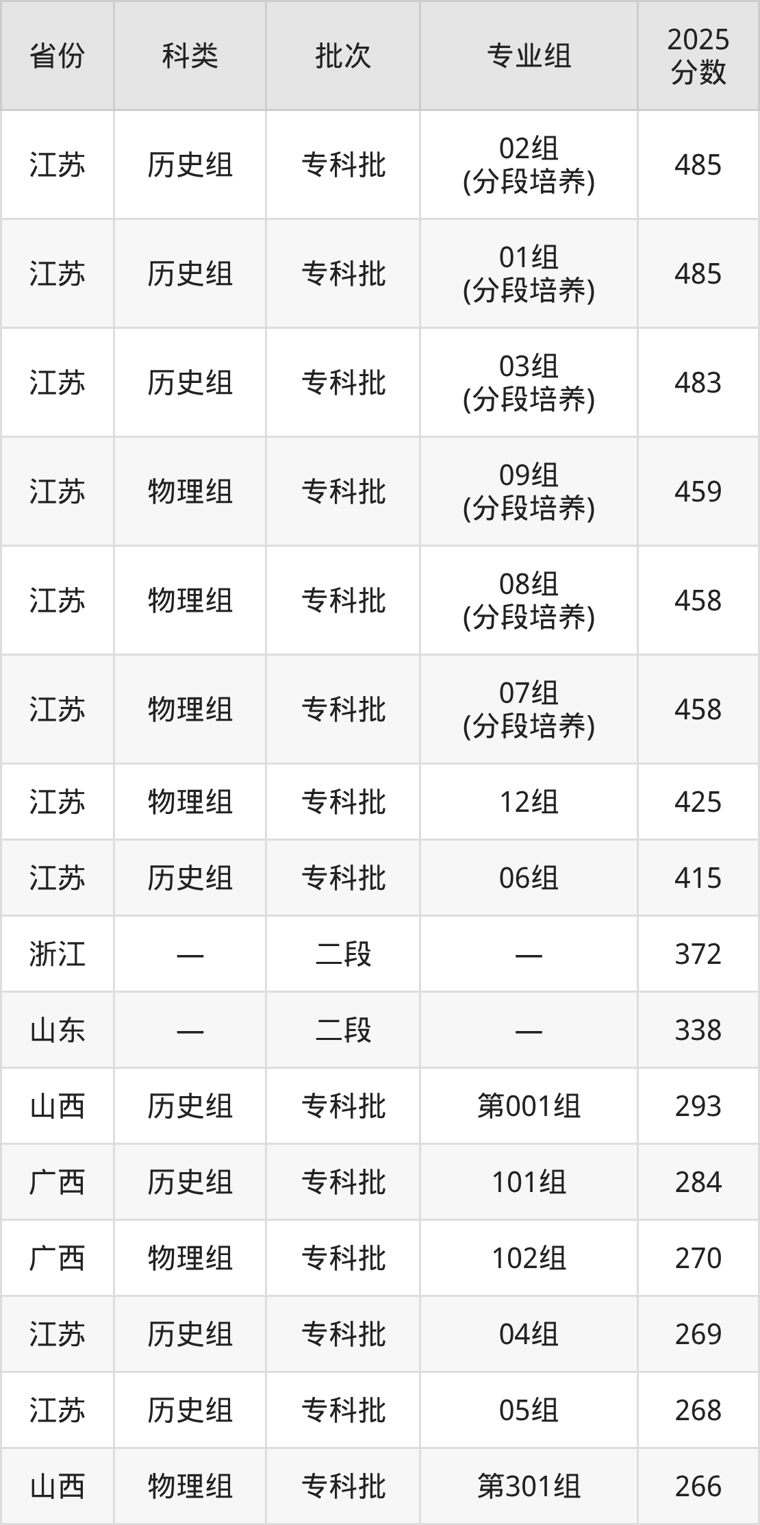 2026届考生如果想知道钟山职业技术学院最低多少分能上,可以根据该校近三年的录取最低分进行预估。下面以江苏2023-2025年高考招录数据为例,预测2026年钟山职业技术学院在江苏招生的最低分情况: