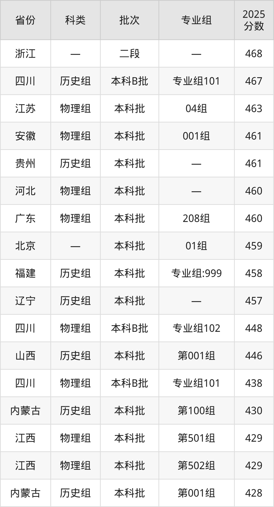 2025年长春人文学院在全国普通批次招生的录取分数范围位于346~508分之间,其中省内分数范围为346分~413分,历史组最低分专业组为“第002组(艺术类)”,考生411分即可报考,物理组最低分专业组为“第010组”,考生346分即可报考。