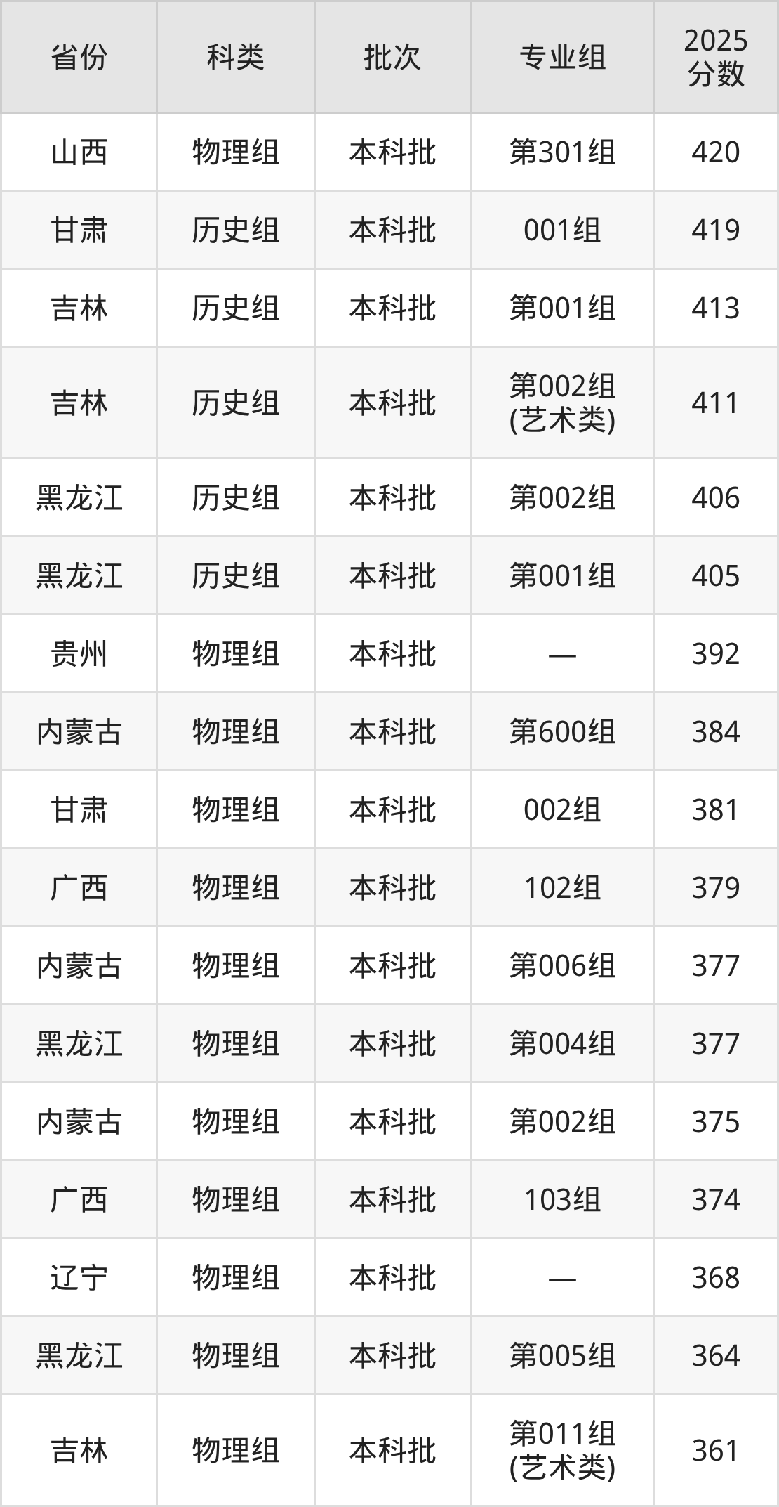 长春人文学院2026年录取分数需在高招结束官方数据公布后更新,2026届有意向报考该校的同学,可以在填报志愿时参考长春人文学院2025年录取分数线:
