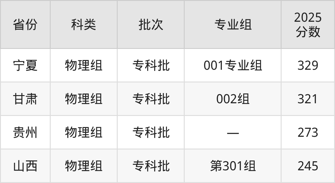 漳州城市职业学院在省外招生的最低分为245分,其中山西地区物理组考生上漳州城市职业学院的分数门槛最低,考生成绩超专科线145分(245分)可上。其次是贵州物理组考生,上漳州城市职业学院至少要超专科线93分(273分)。