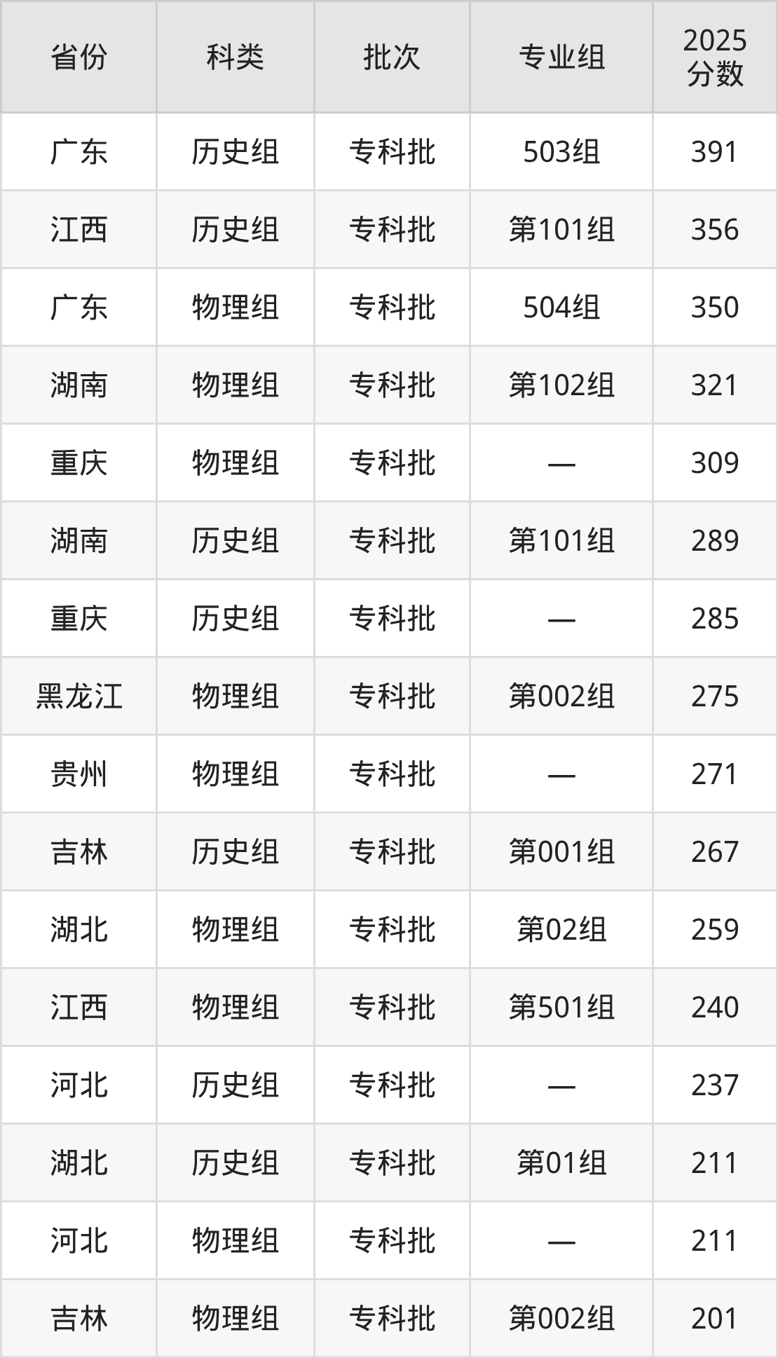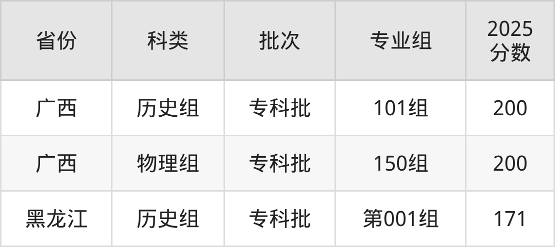 而广东地区历史组考生的分数门槛最高,2025年广西理工职业技术学院503组在广东招生最低分为391分,考生至少要超专科线176分才有可能被录取。