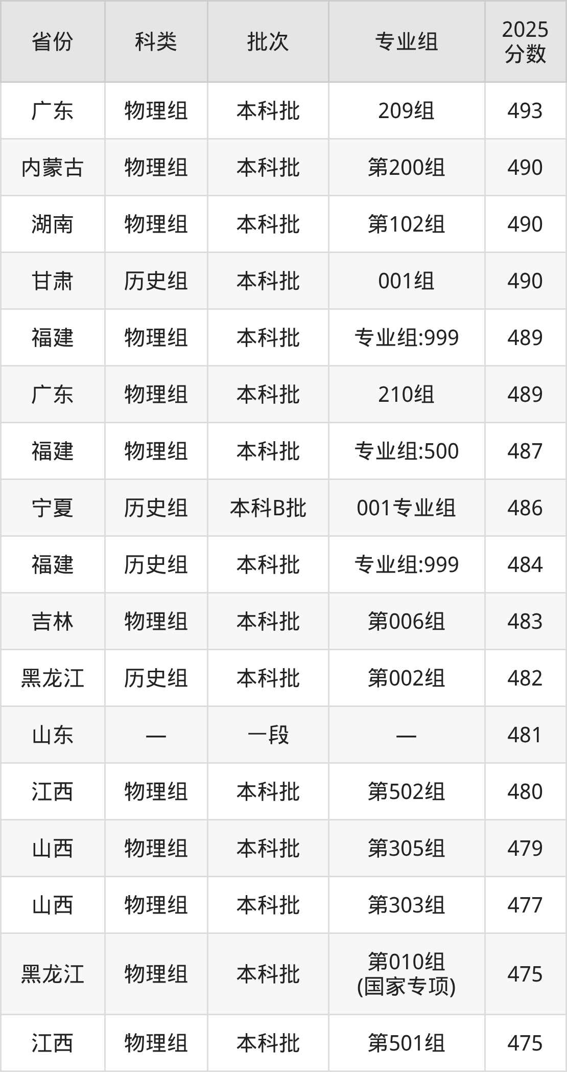 2025年哈尔滨商业大学在全国普通批次招生的录取分数范围位于382~553分之间,其中省内分数范围为422分~515分,历史组最低分专业组为“第002组”,考生482分即可报考,物理组最低分专业组为“第013组(地方专项)”,考生422分即可报考。