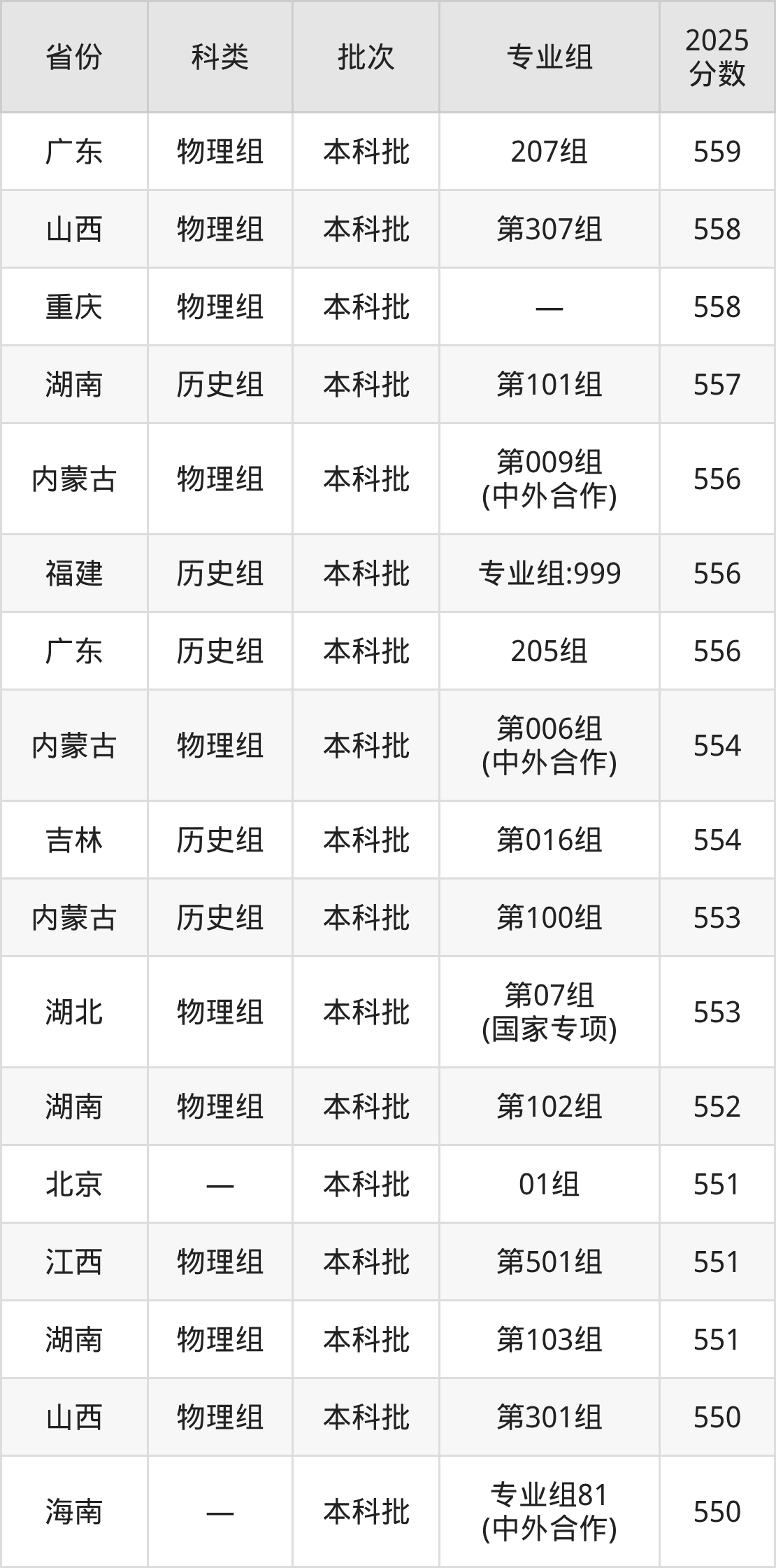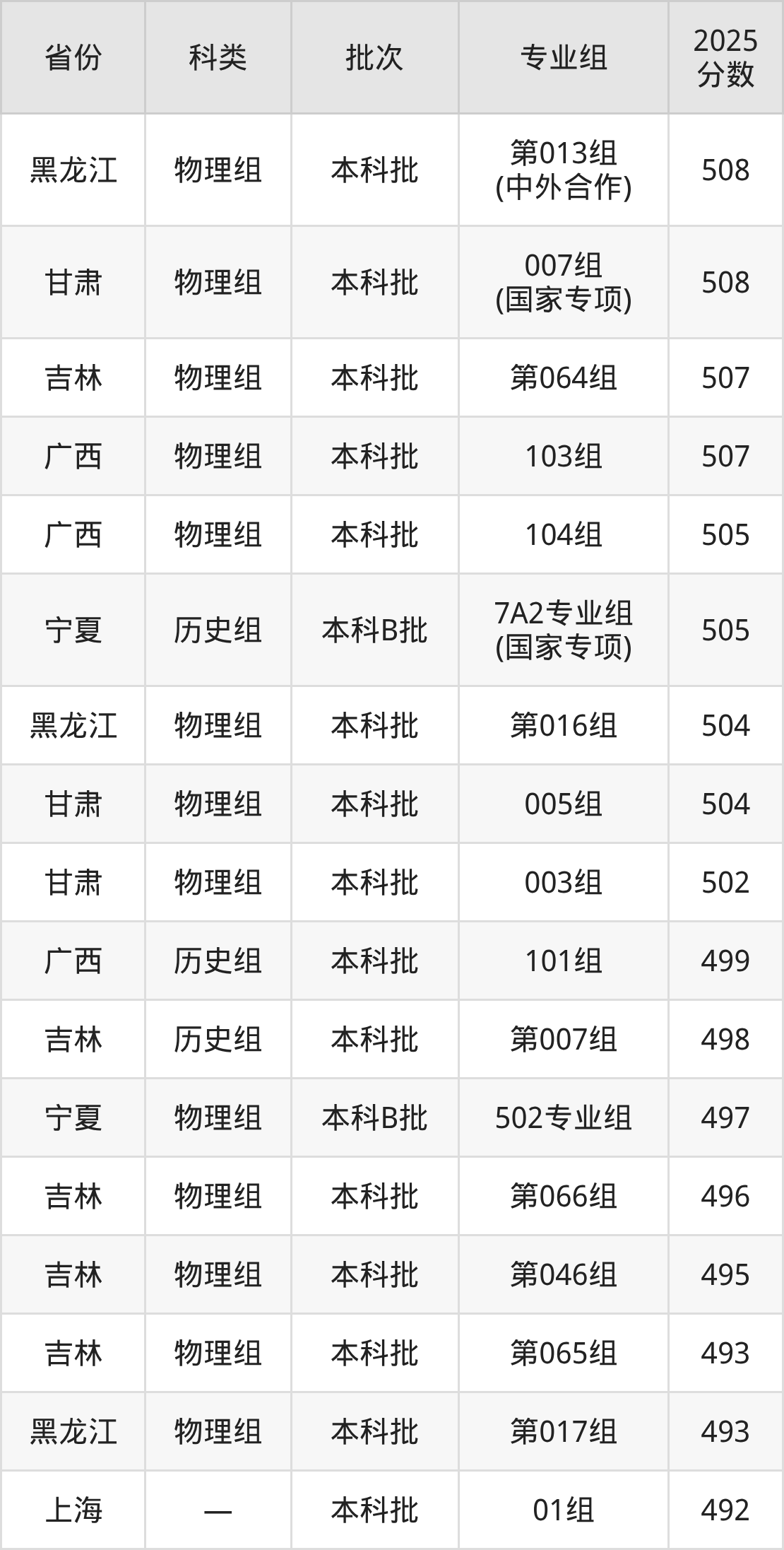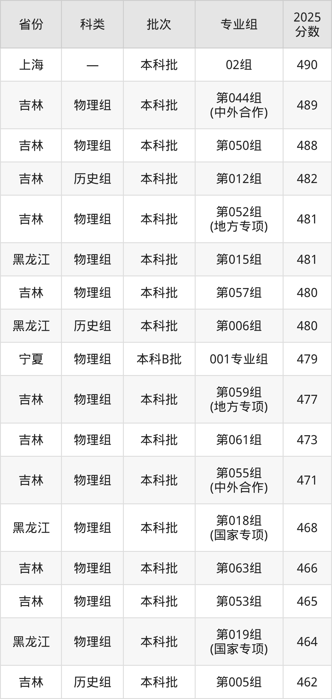 2025年延边大学在全国普通批次招生的录取分数范围位于386~617分之间,其中省内分数范围为386分~554分,历史组最低分专业组为“第008组”,考生386分即可报考,物理组最低分专业组为“第049组”,考生387分即可报考。