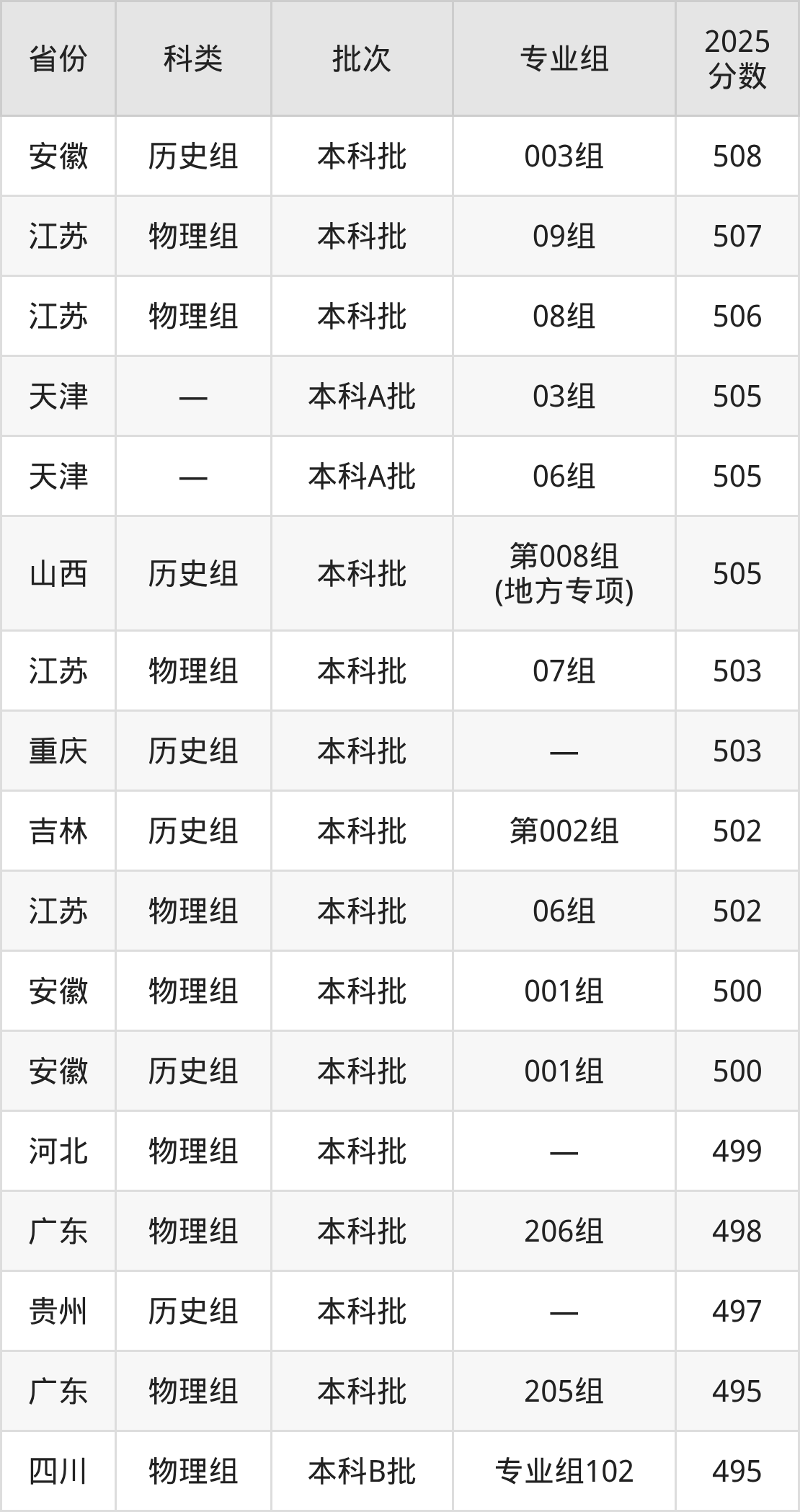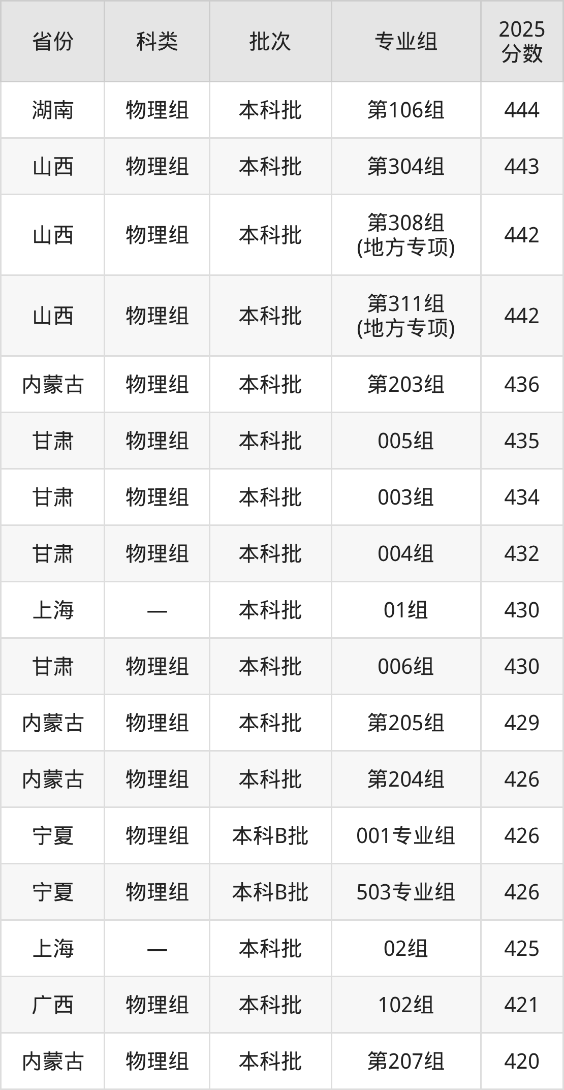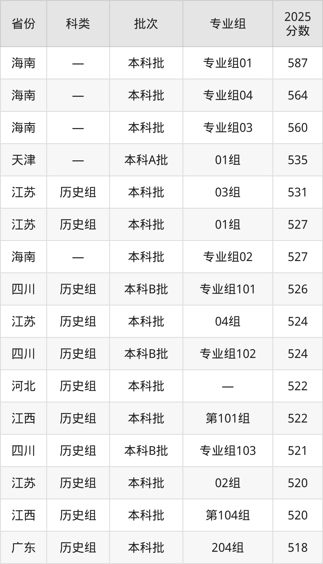 而海南地区考生的分数门槛最高,2025年吕梁学院专业组01在海南招生最低分为587分,考生至少要超本科线107分才有可能被录取。
