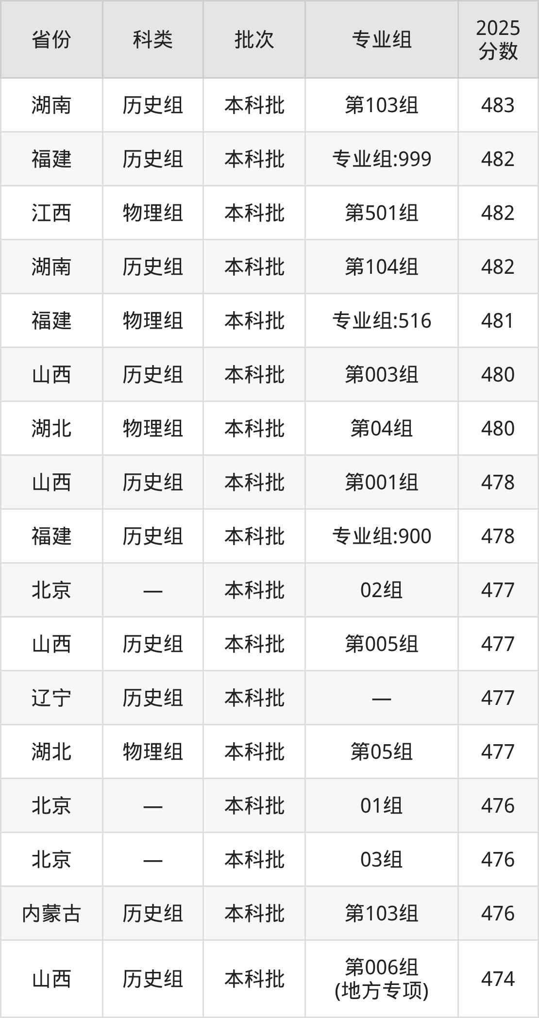目前能查询到的最新分数为2025年招录数据,2026年吕梁学院录取分数线会在高考招录结束后公布,本届考生可以利用往年分数预估录取概率。