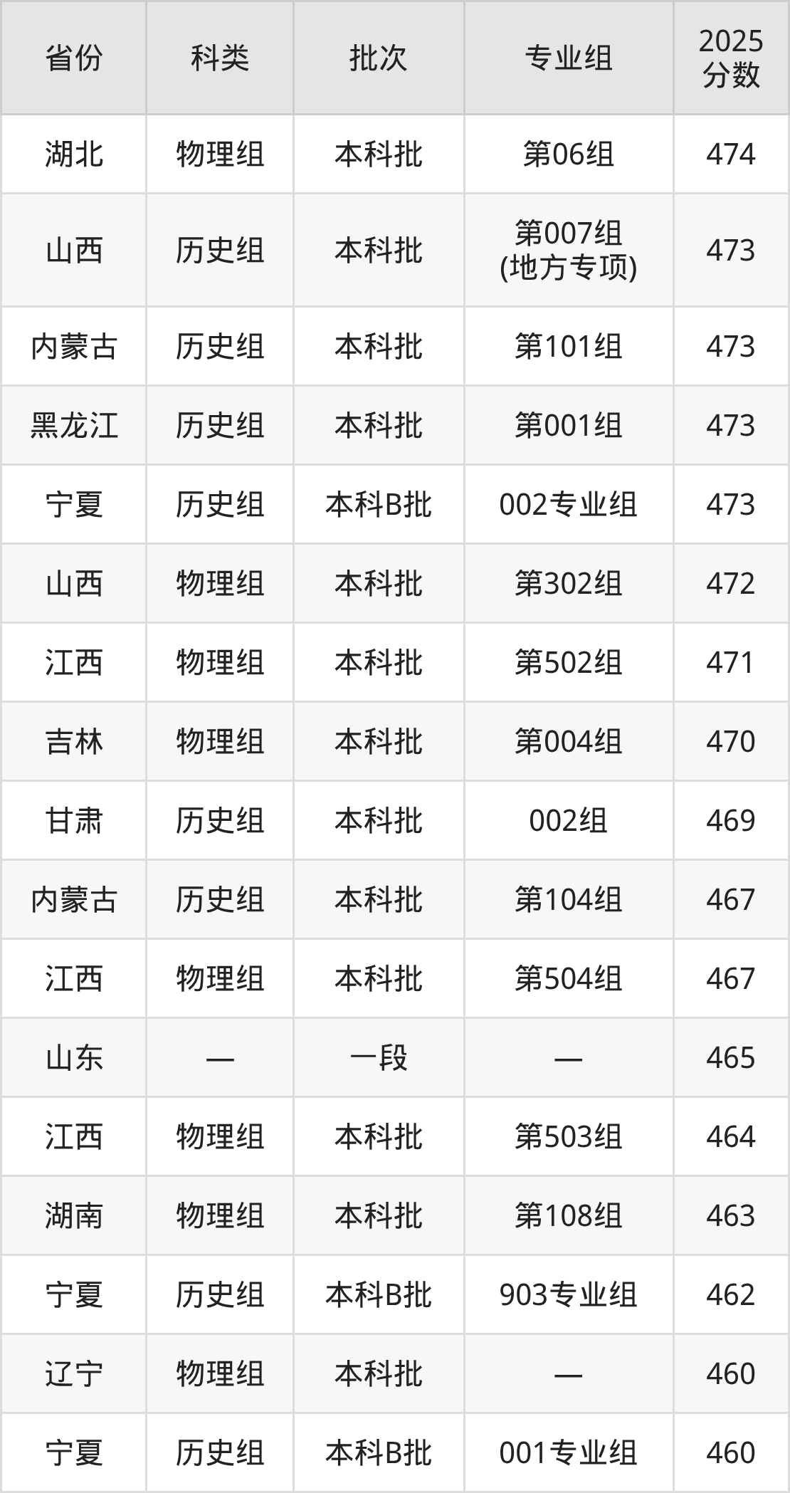 2025年吕梁学院在全国普通批次招生的录取分数范围位于404~587分之间,其中省内分数范围为442分~511分,历史组最低分专业组为“第007组(地方专项)”,考生473分即可报考,物理组最低分专业组为“第308组(地方专项)”,考生442分即可报考。