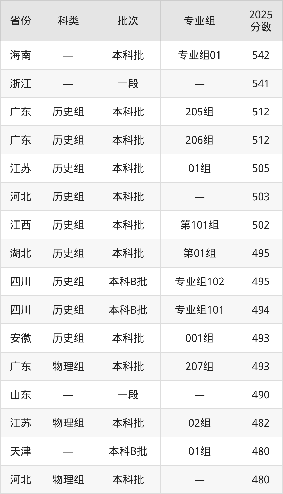 而海南地区考生的分数门槛最高,2025年重庆外语外事学院专业组01在海南招生最低分为542分,考生至少要超本科线62分才有可能被录取。