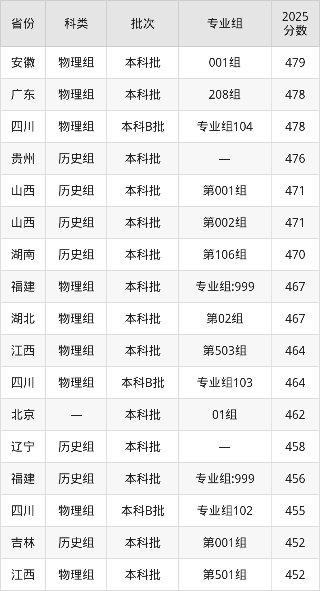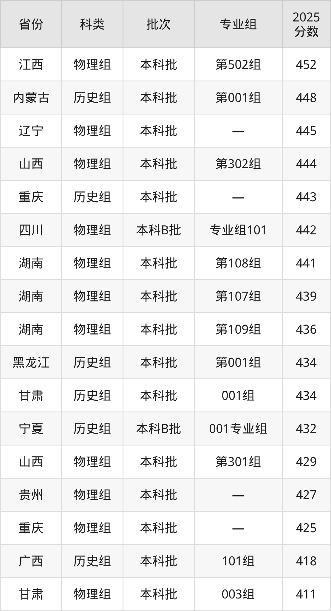 下面是重庆外语外事学院2025年在全国各省的录取分数线一览表,供参考: