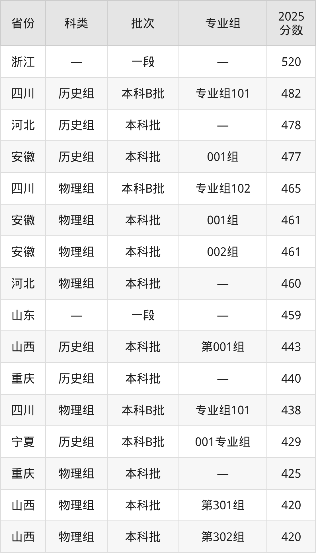 而浙江地区考生的分数门槛最高,2025年陕西科技大学镐京学院在浙江招生最低分为520分,考生至少要超一段线30分才有可能被录取。