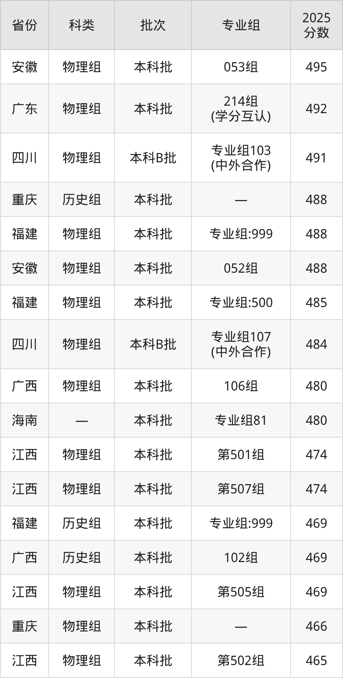 下面是豫章师范学院2025年在全国各省的录取分数线一览表,供参考: