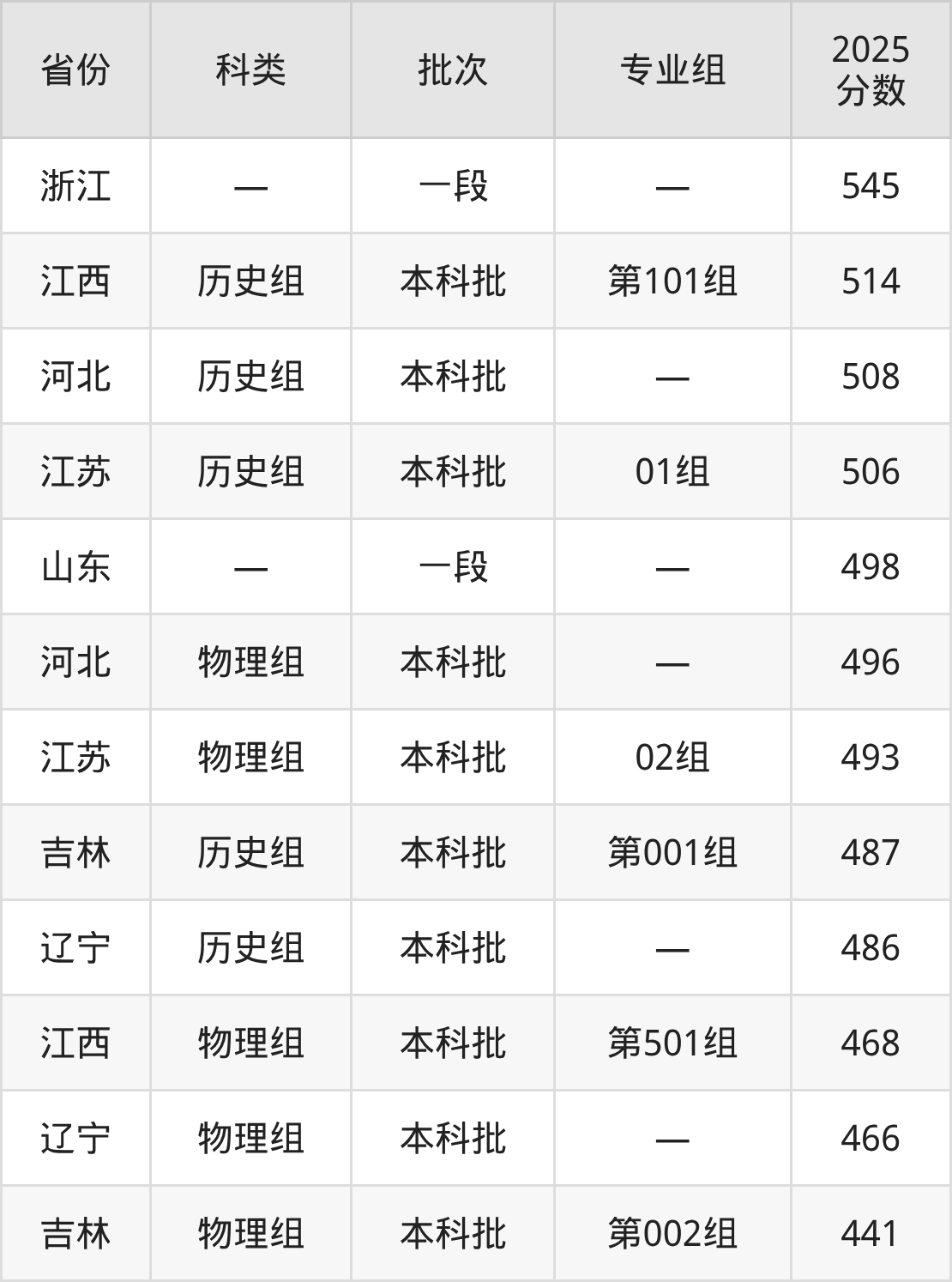 而浙江地区考生的分数门槛最高,2025年河北经贸大学经济管理学院在浙江招生最低分为545分,考生至少要超一段线55分才有可能被录取。