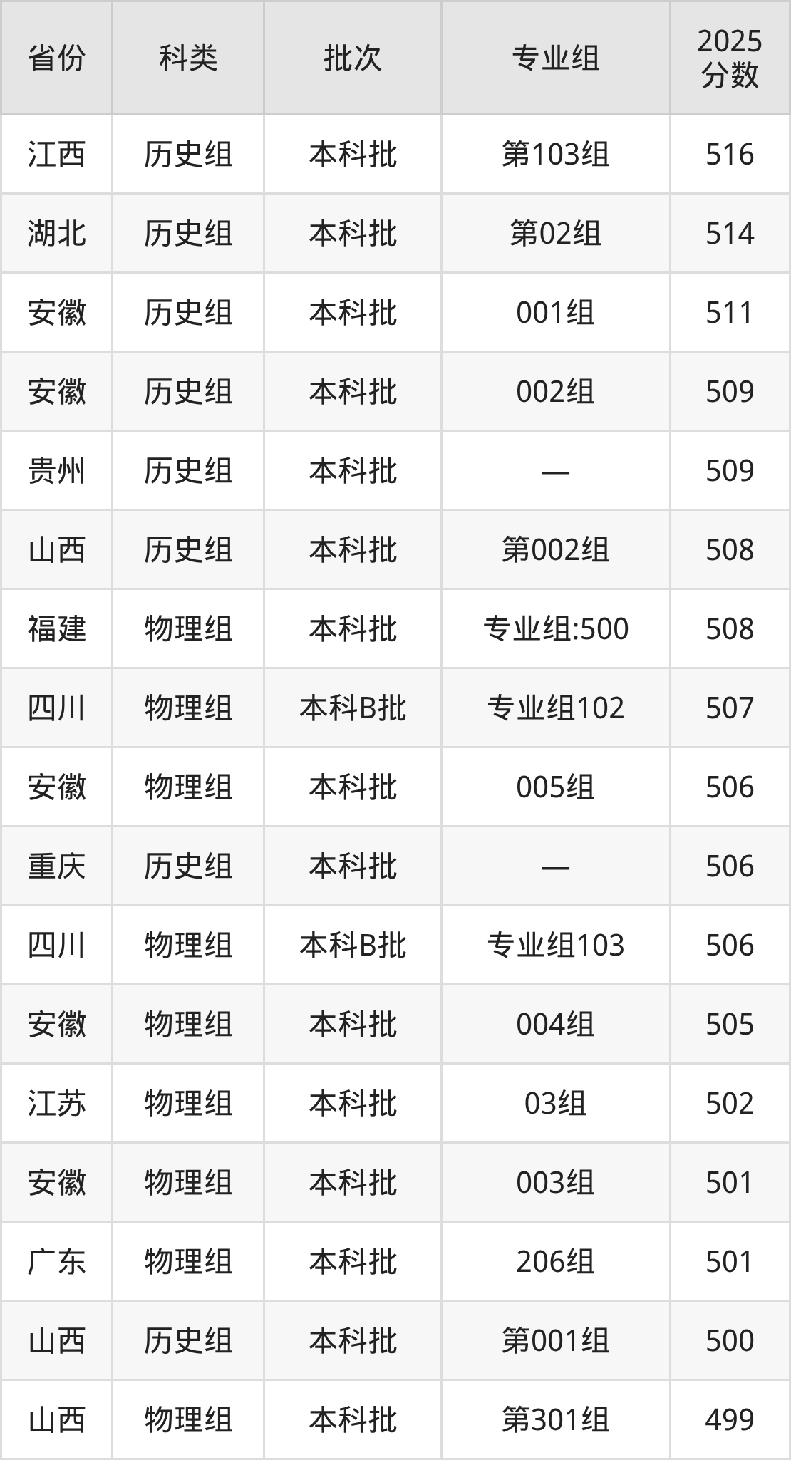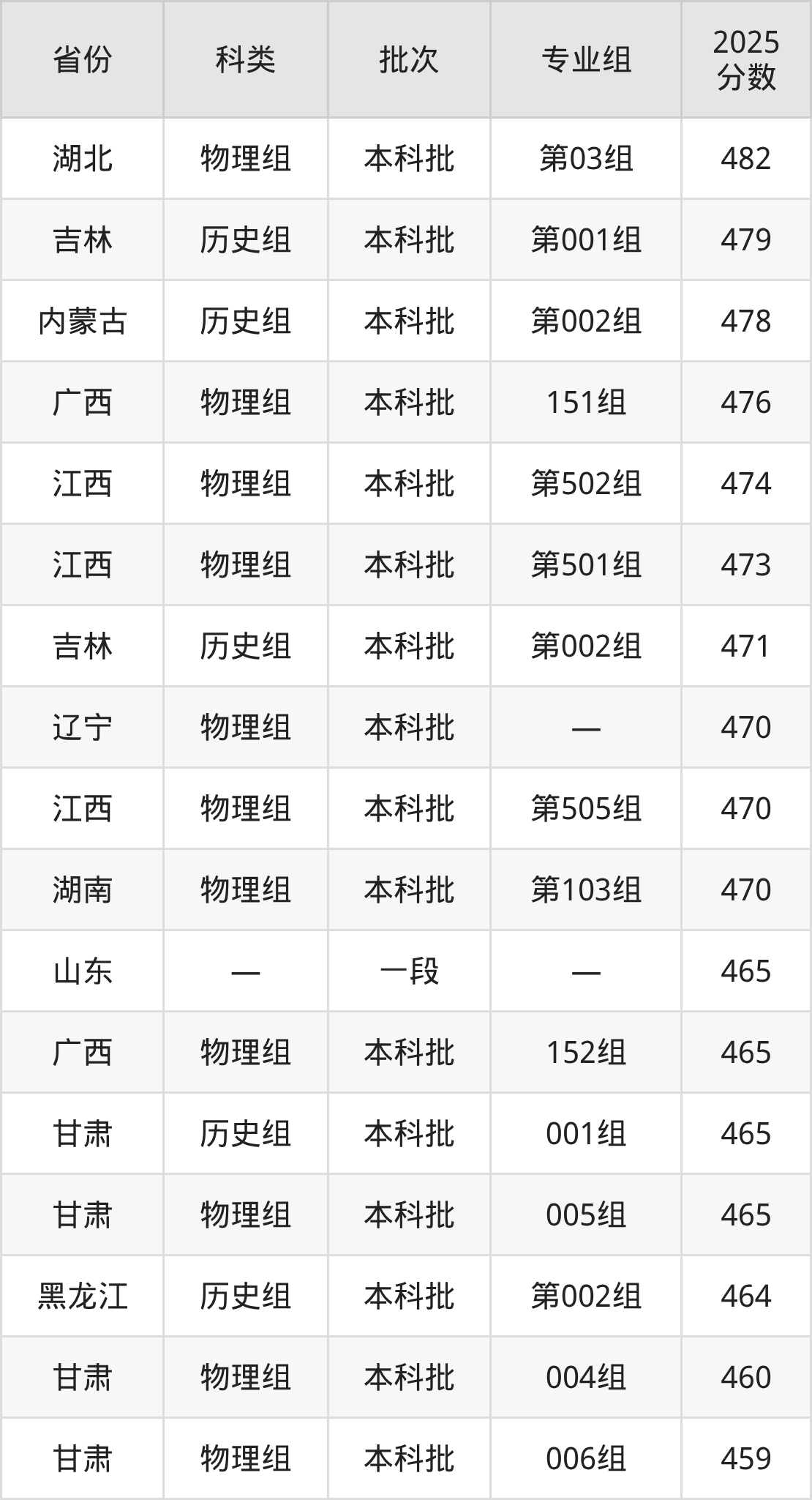 2025年新余学院在全国普通批次招生的录取分数范围位于411~581分之间,其中省内分数范围为470分~519分,历史组最低分专业组为“第103组”,考生516分即可报考,物理组最低分专业组为“第505组”,考生470分即可报考。