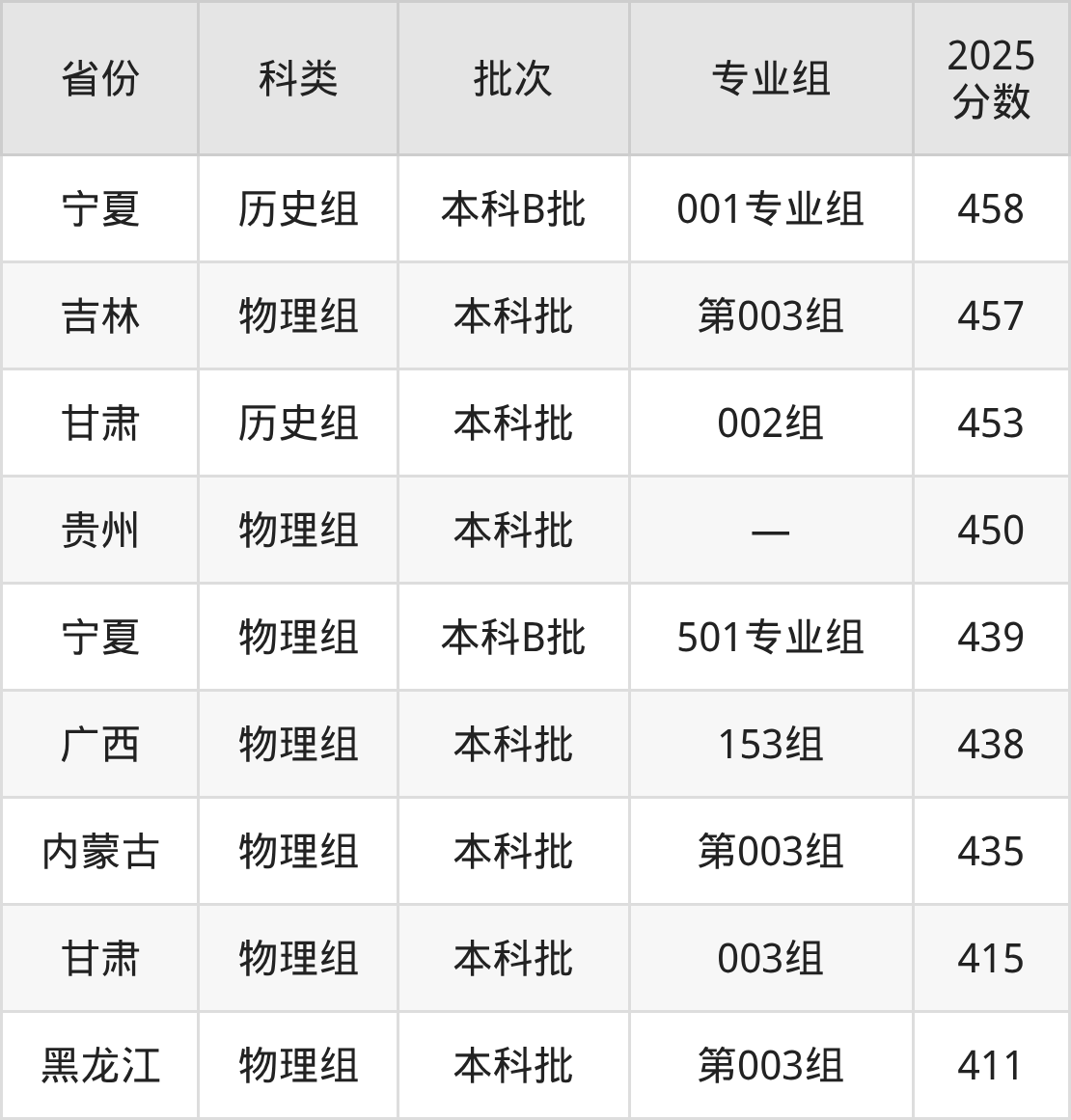 新余学院在省外招生的最低分为411分,其中黑龙江地区物理组考生上新余学院的分数门槛最低,考生成绩超本科线51分(411分)可上。其次是甘肃物理组考生,上新余学院至少要超本科线41分(415分)。