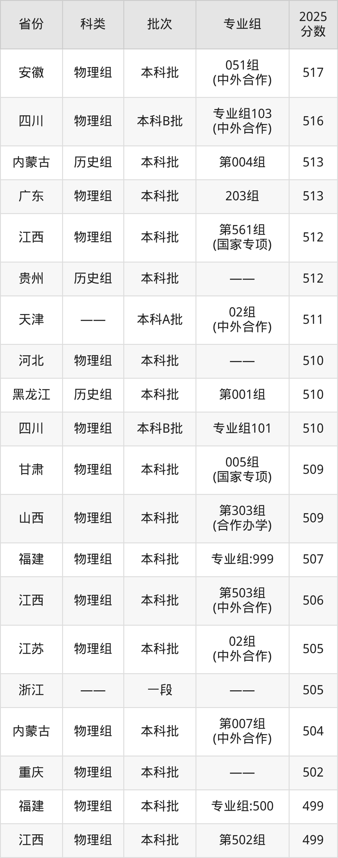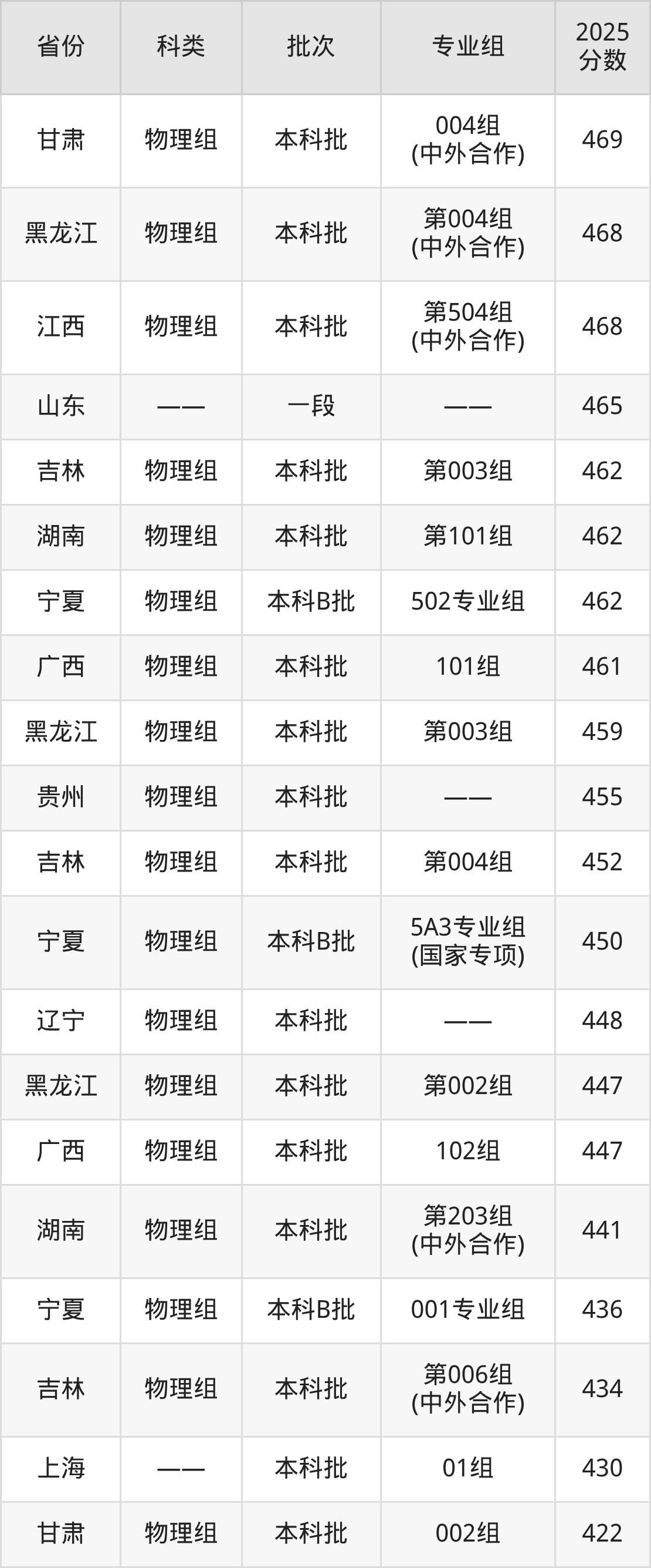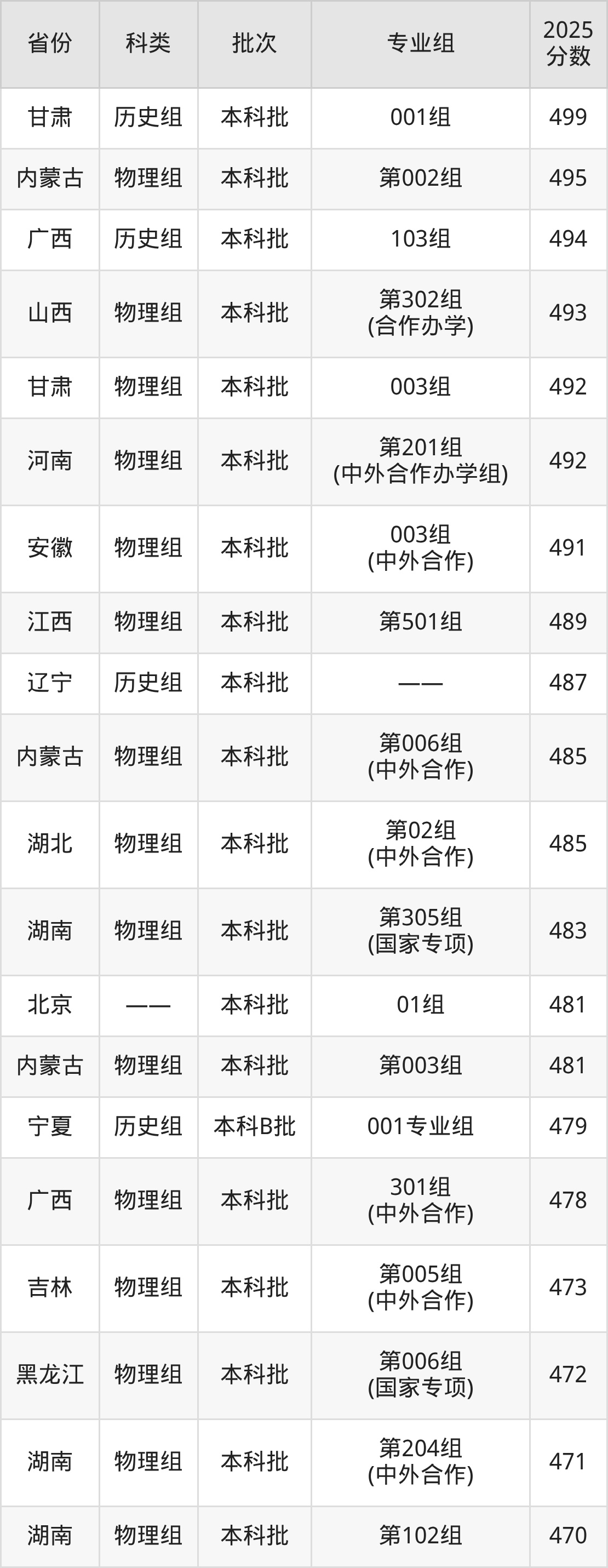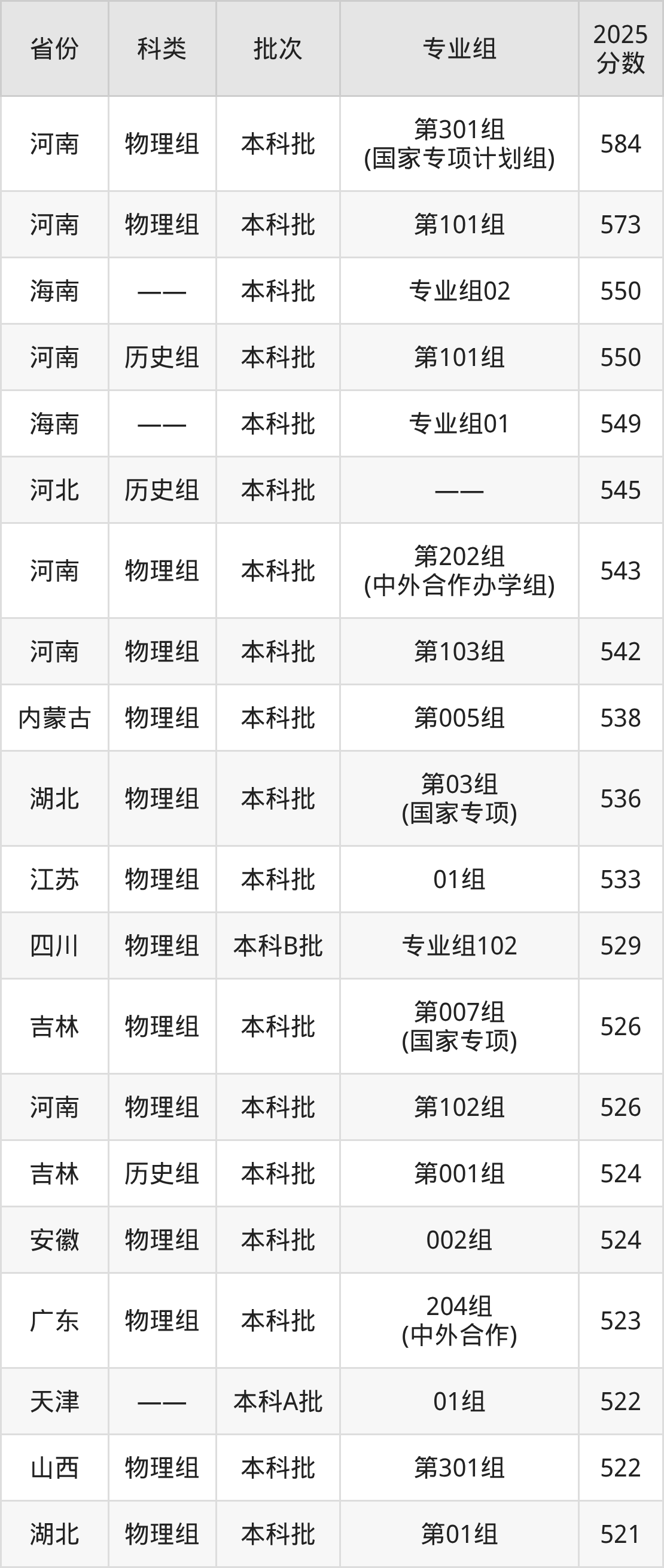 而河南地区物理组考生的分数门槛最高,2025年辽宁科技大学第301组(国家专项计划组)在河南招生最低分为584分,考生至少要超本科线157分才有可能被录取。