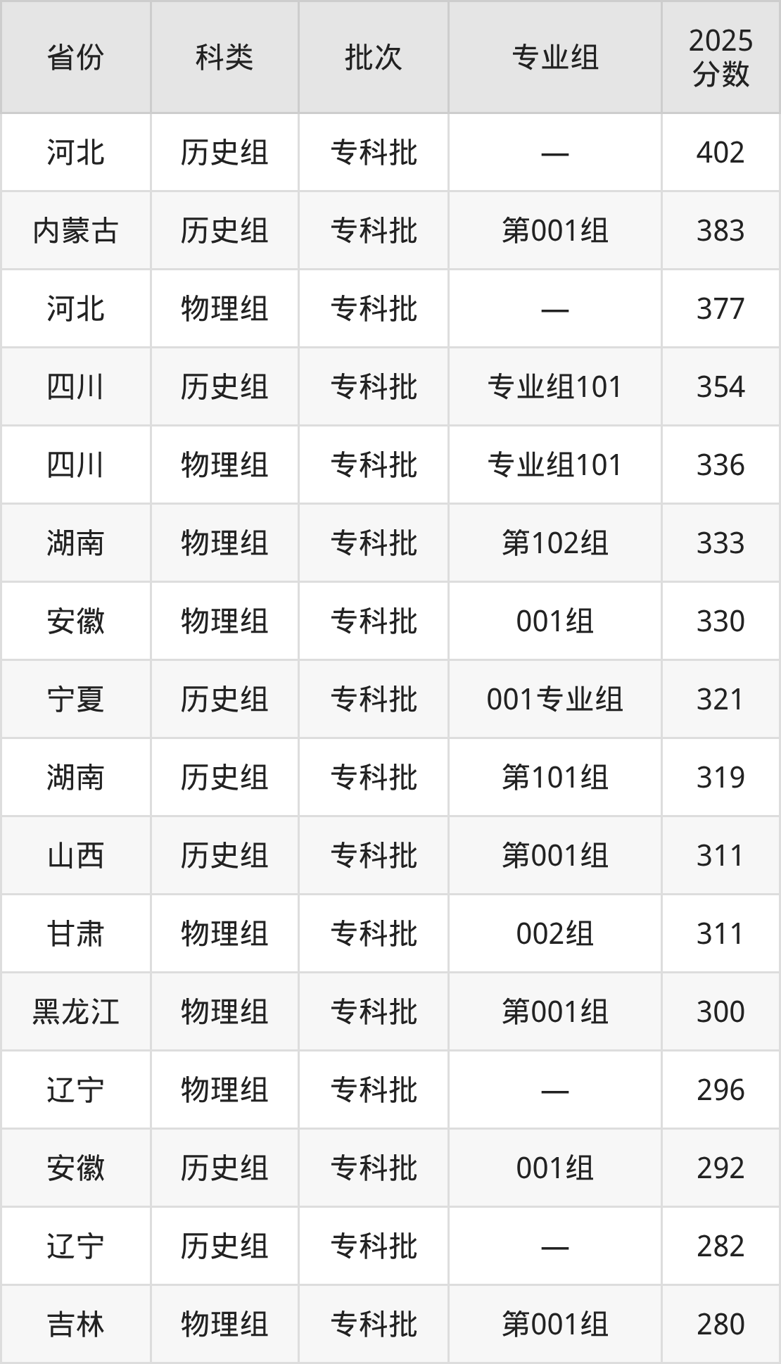 而河北地区历史组考生的分数门槛最高,2025年辽宁建筑职业学院在河北招生最低分为402分,考生至少要超专科线202分才有可能被录取。