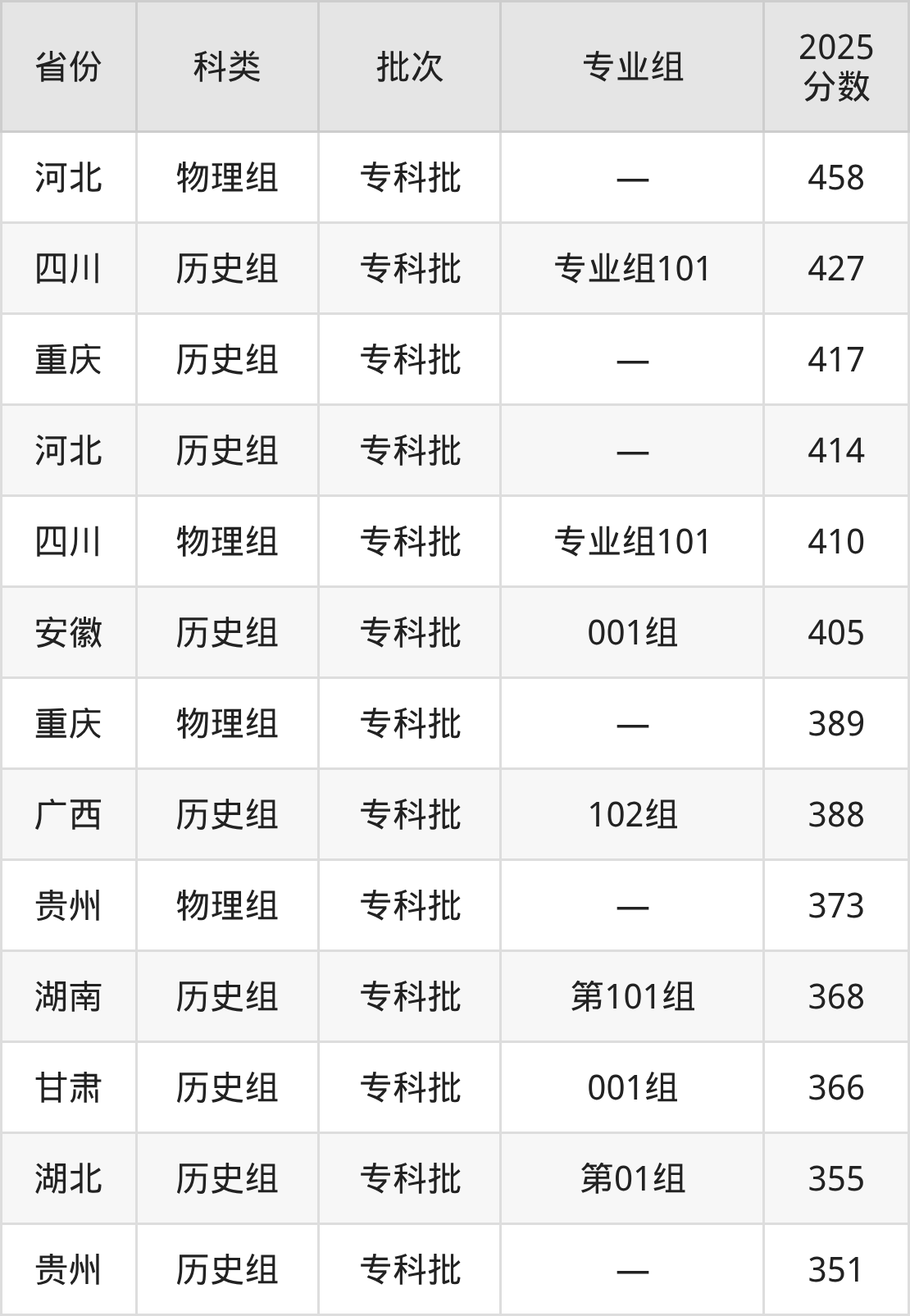 下面是德宏职业学院2025年在全国各省的录取分数线一览表,供参考: