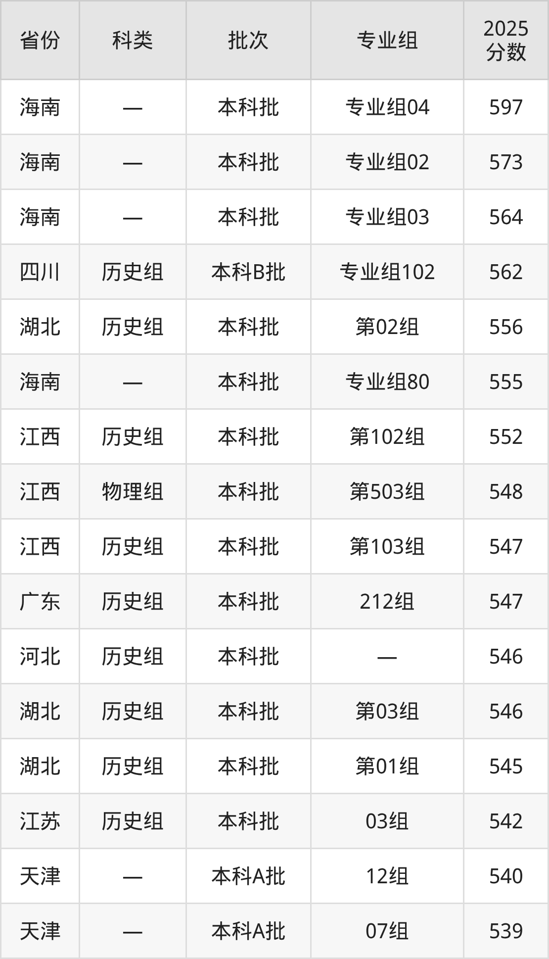 而海南地区考生的分数门槛最高,2025年长沙学院专业组04在海南招生最低分为597分,考生至少要超本科线117分才有可能被录取。