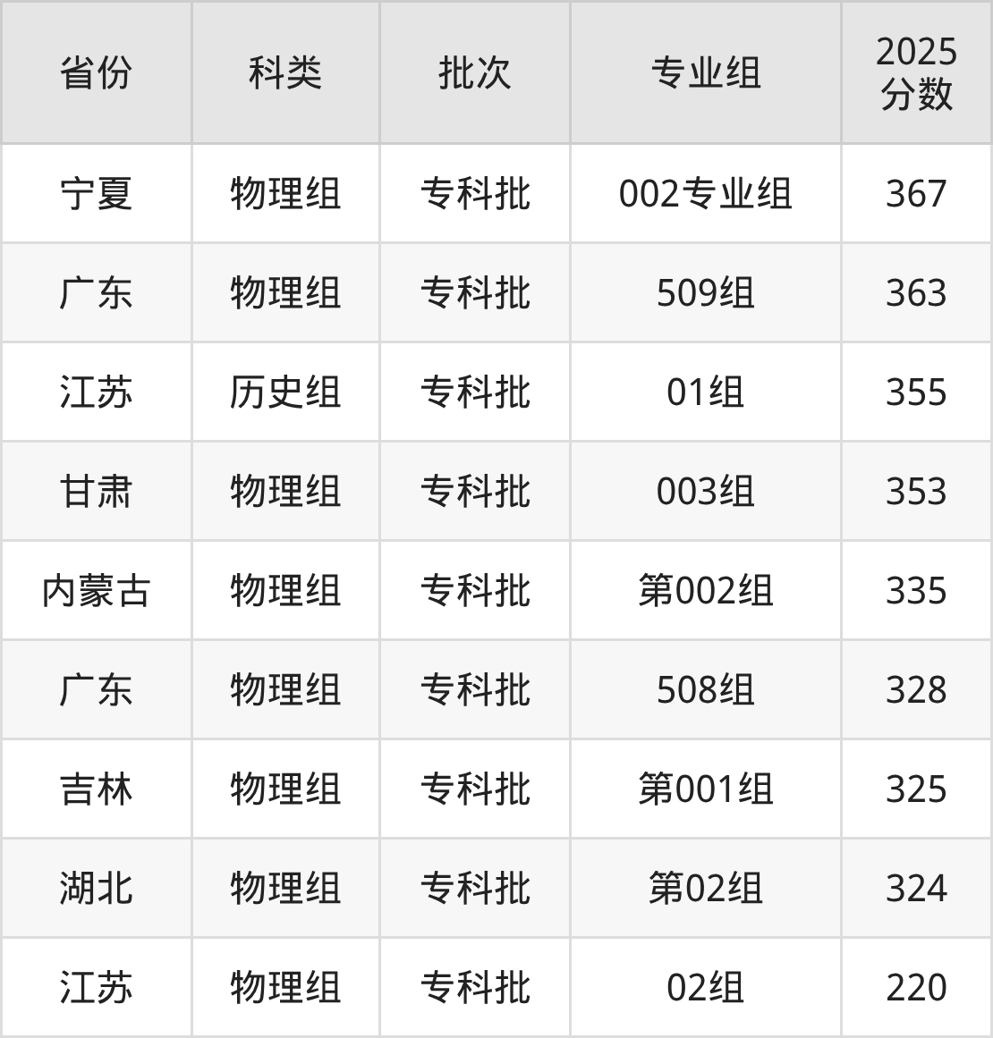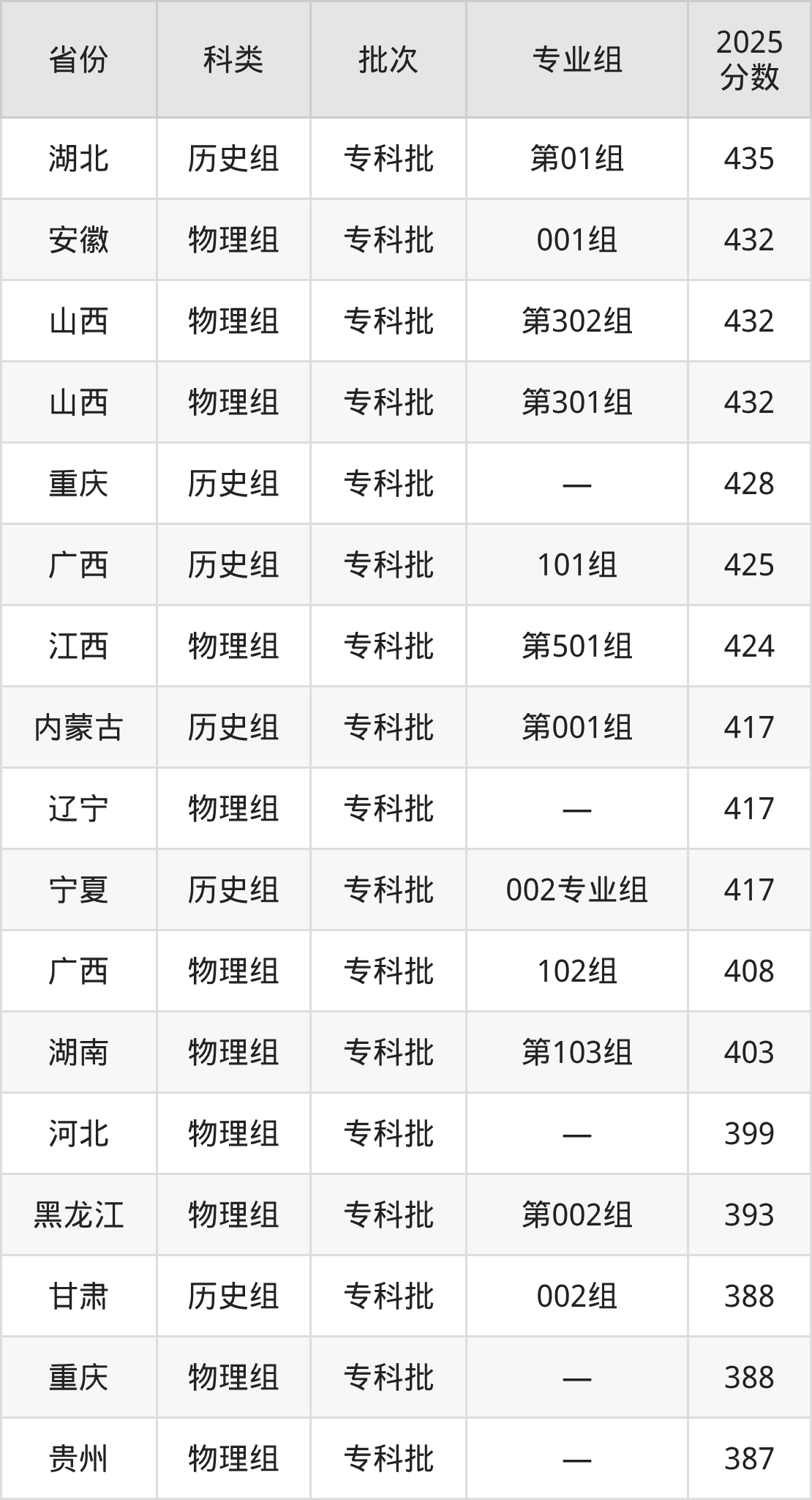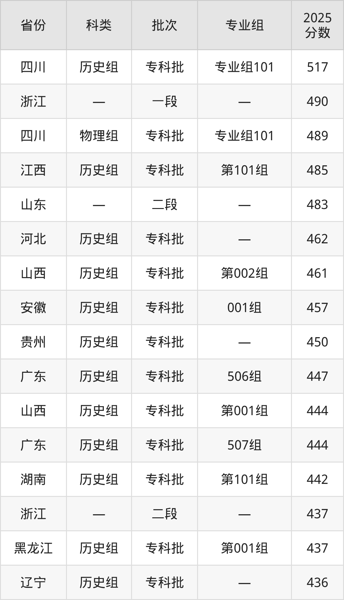 下面是重庆城市管理职业学院2025年在全国各省的录取分数线一览表,供参考: