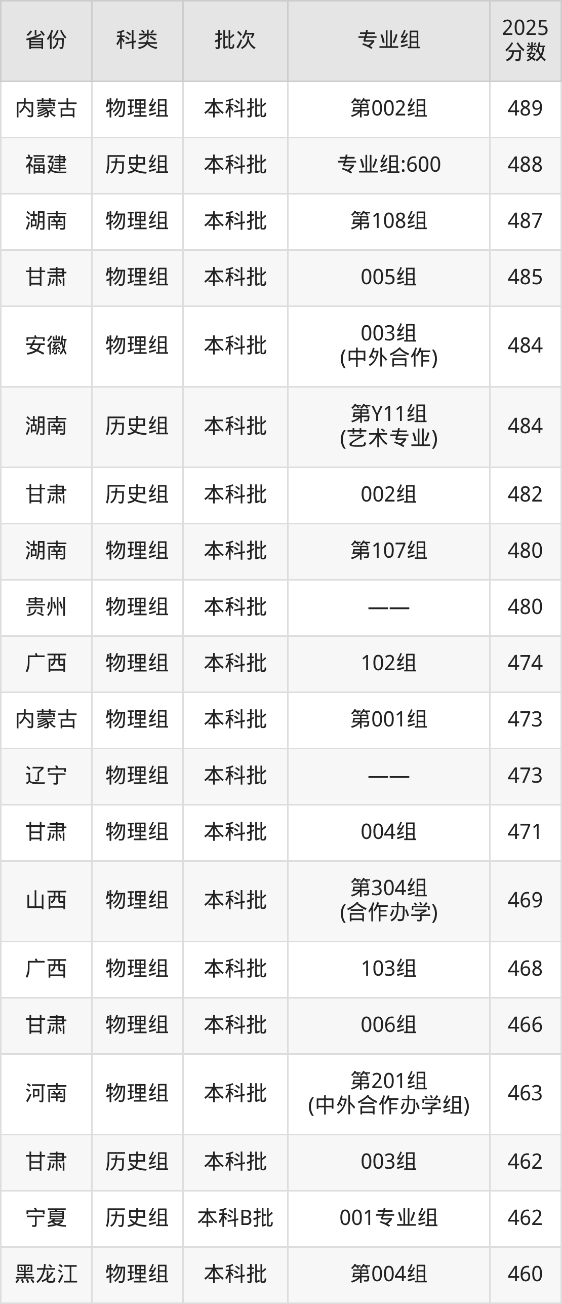 下面是重庆文理学院2025年在全国各省的录取分数线一览表,供参考: