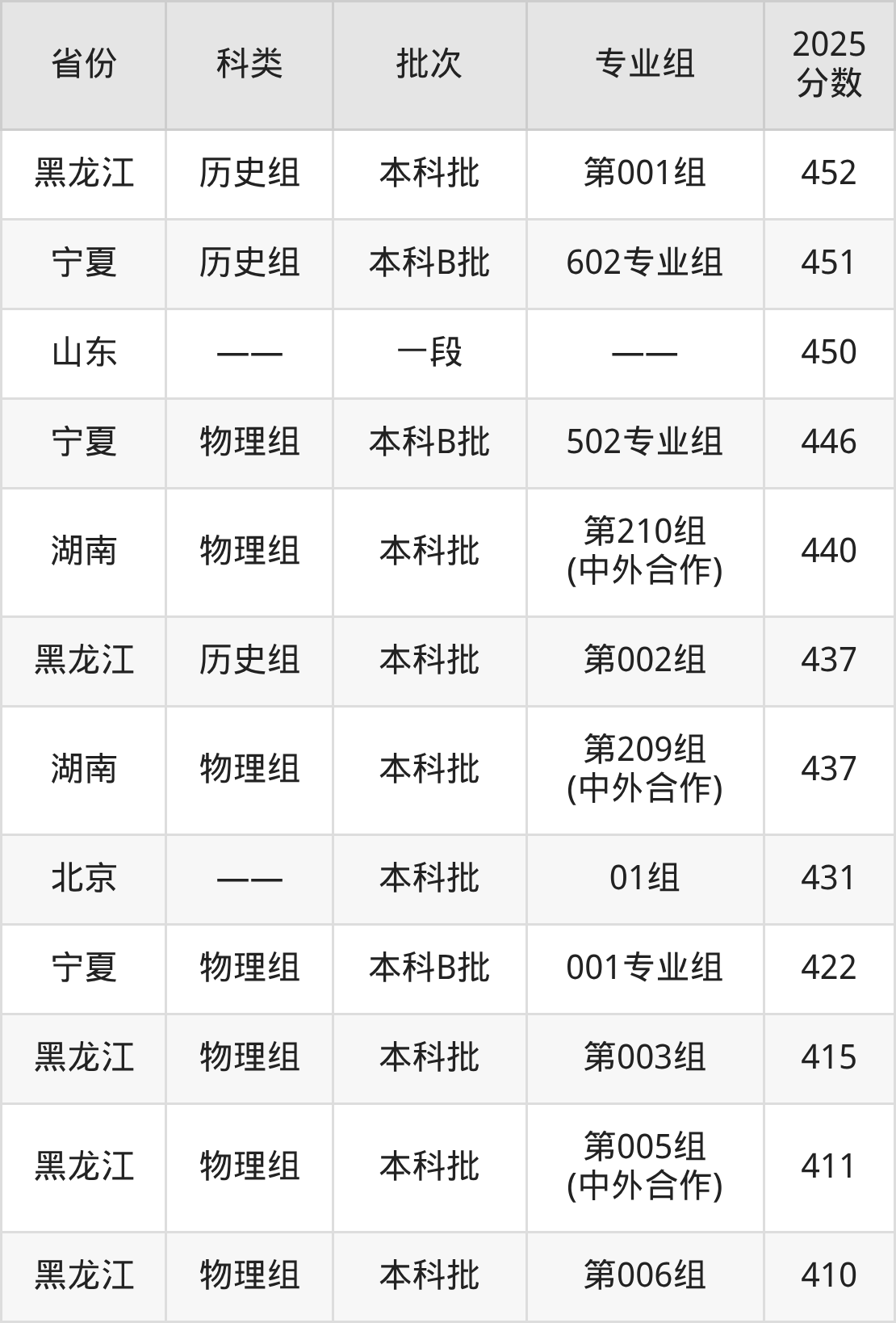重庆文理学院在市外招生的最低分为410分。其中黑龙江地区物理组考生上重庆文理学院的分数门槛最低,考生成绩超本科线50分(410分)可上。