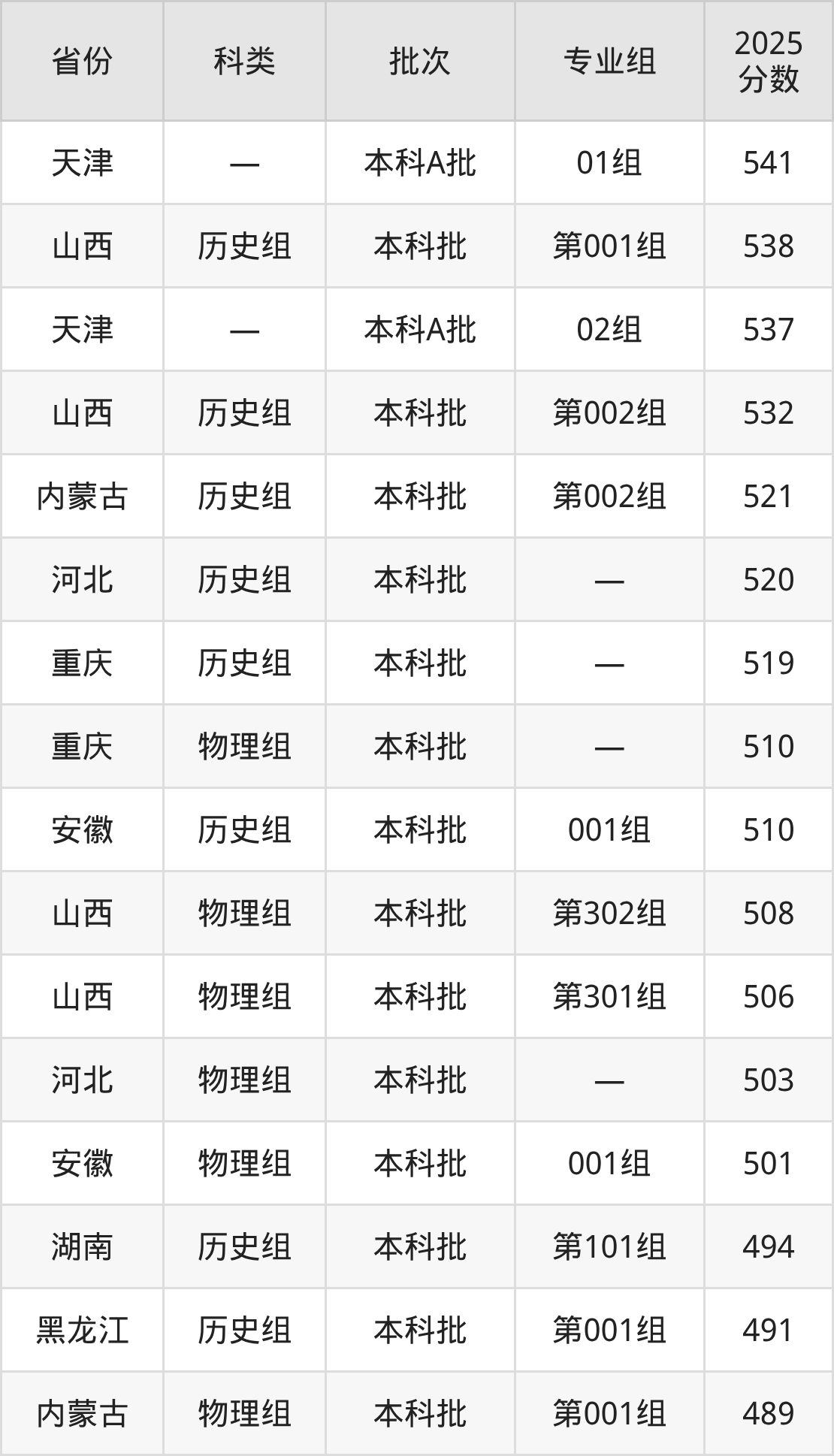 唐山学院在省内招生最低录取分数线为503分,在省外招生最低录取分数线为460分,不同地区、不同科类的考生最低分有差异。