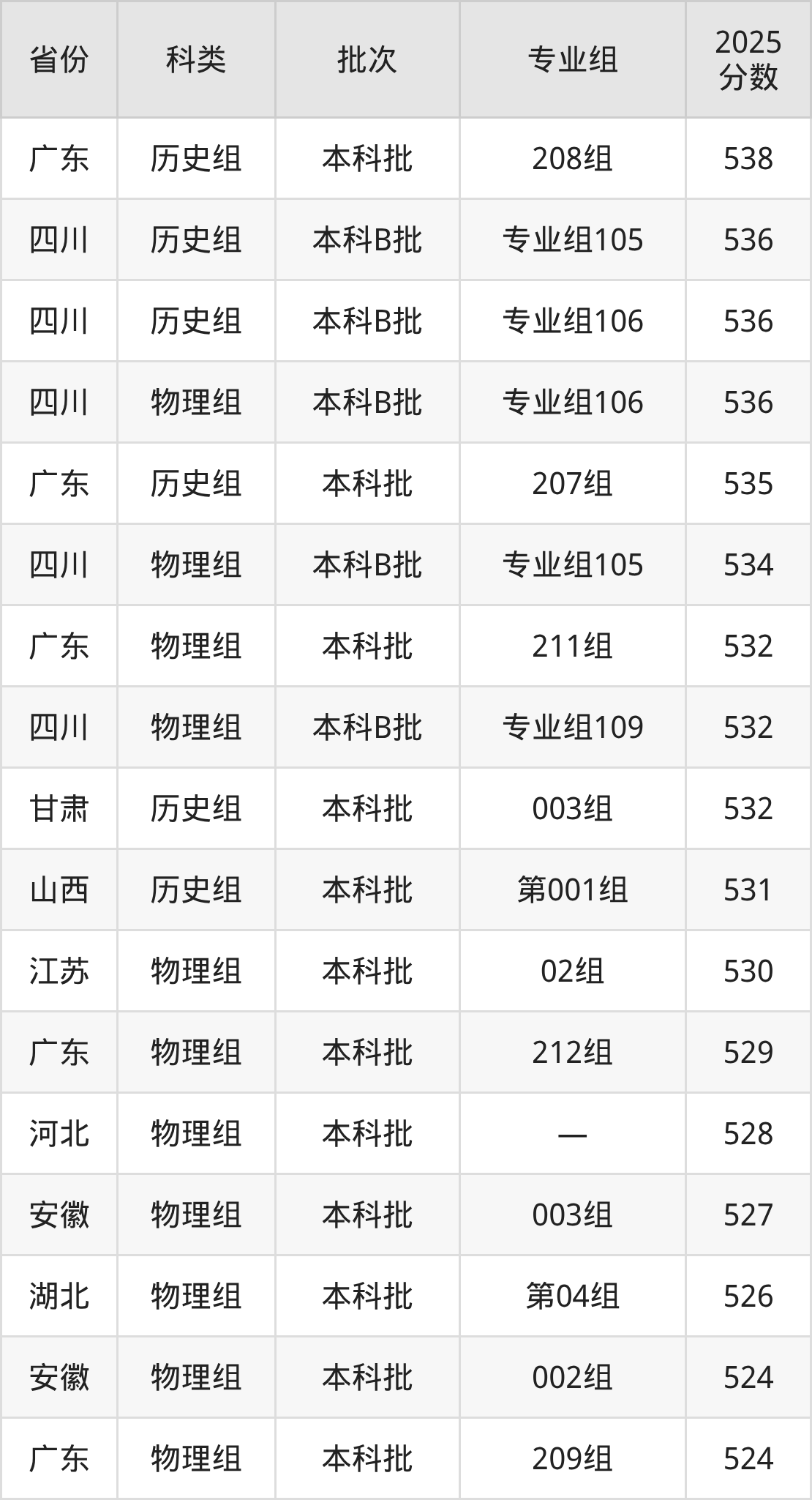 2025年西华师范大学在全国普通批次招生的录取分数范围位于422~584分之间,其中省内分数范围为438分~563分,历史组最低分专业组为“专业组107”,考生467分即可报考,物理组最低分专业组为“专业组111”,考生438分即可报考。