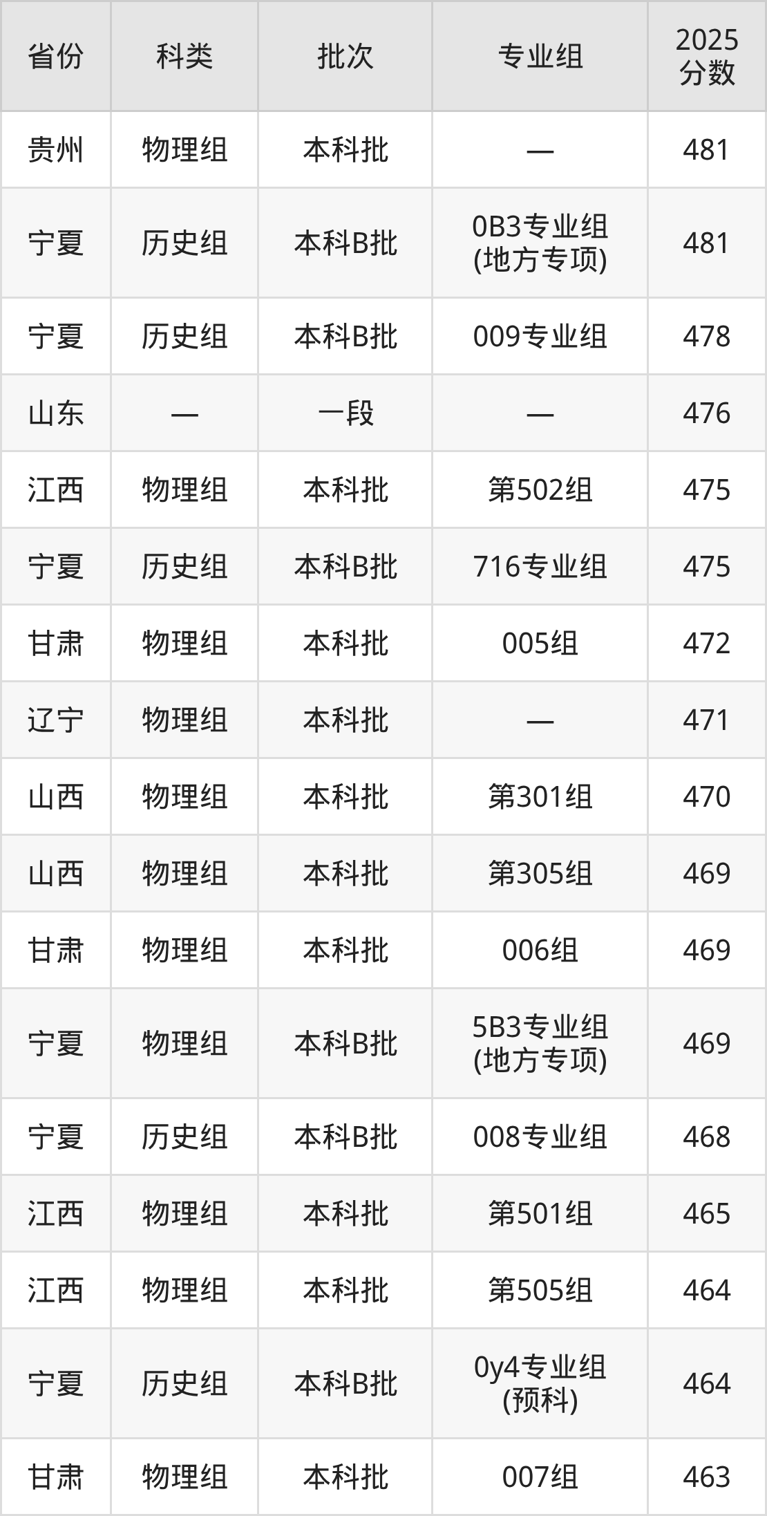 下面是宁夏师范大学2025年在全国各省的录取分数线一览表,供参考: