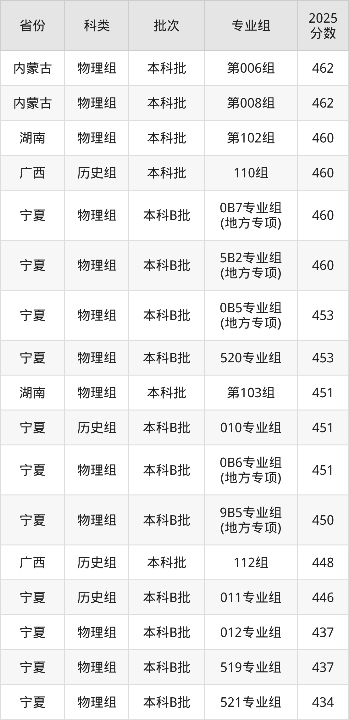 而海南地区考生的分数门槛最高,2025年宁夏师范大学专业组02在海南招生最低分为602分,考生至少要超本科线122分才有可能被录取。