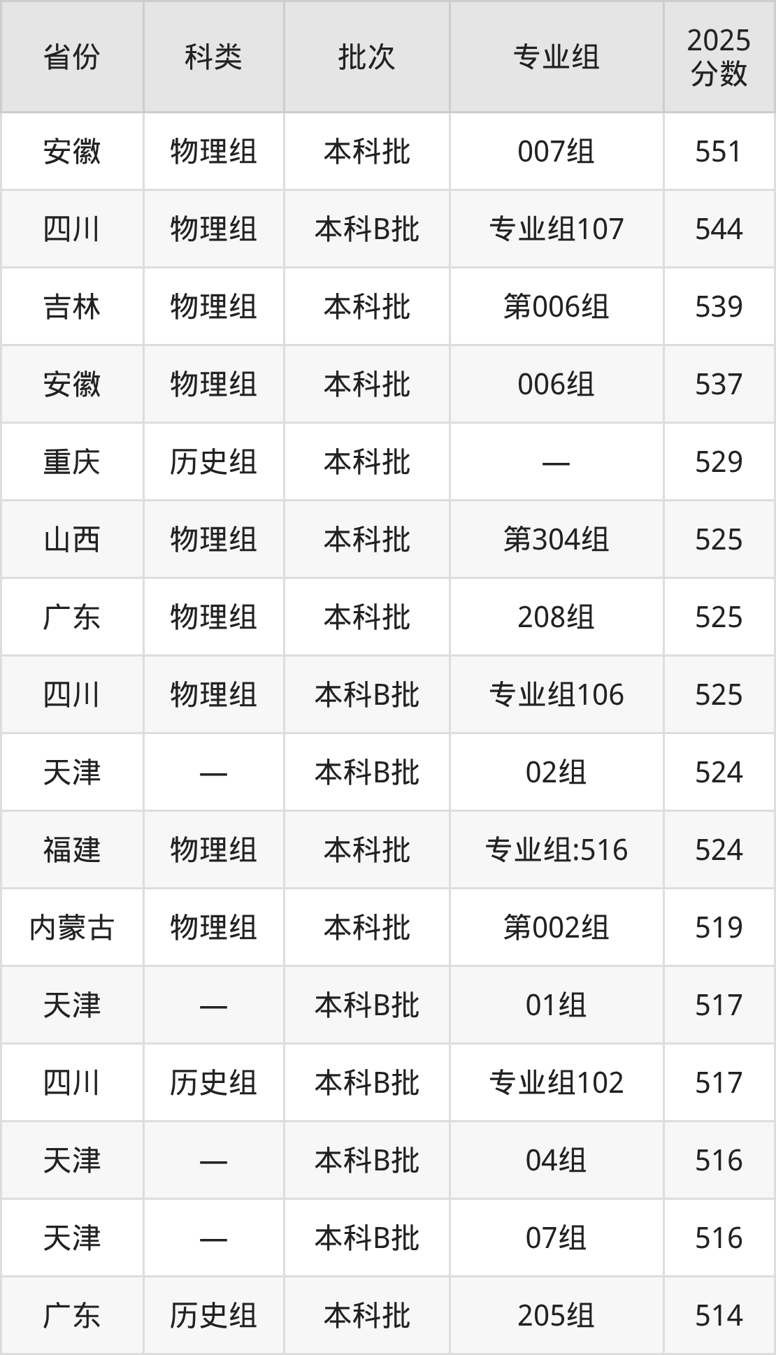 下面是天津医科大学临床医学院2025年在全国各省的录取分数线一览表,供参考: