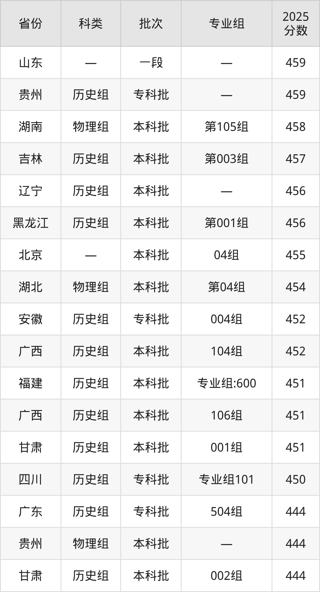 而海南地区考生的分数门槛最高,2025年北京中医药大学东方学院专业组01在海南招生最低分为547分,考生至少要超本科线67分才有可能被录取。