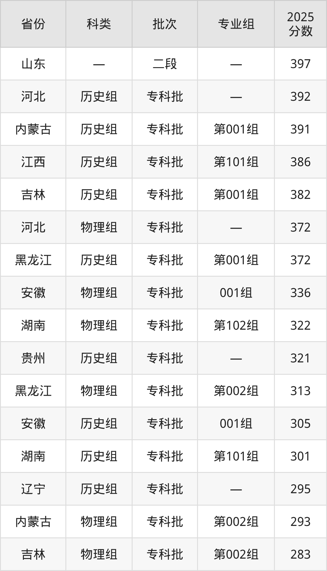 而山东地区考生的分数门槛最高,2025年阜新高等专科学校在山东招生最低分为397分,考生至少要超二段线247分才有可能被录取。