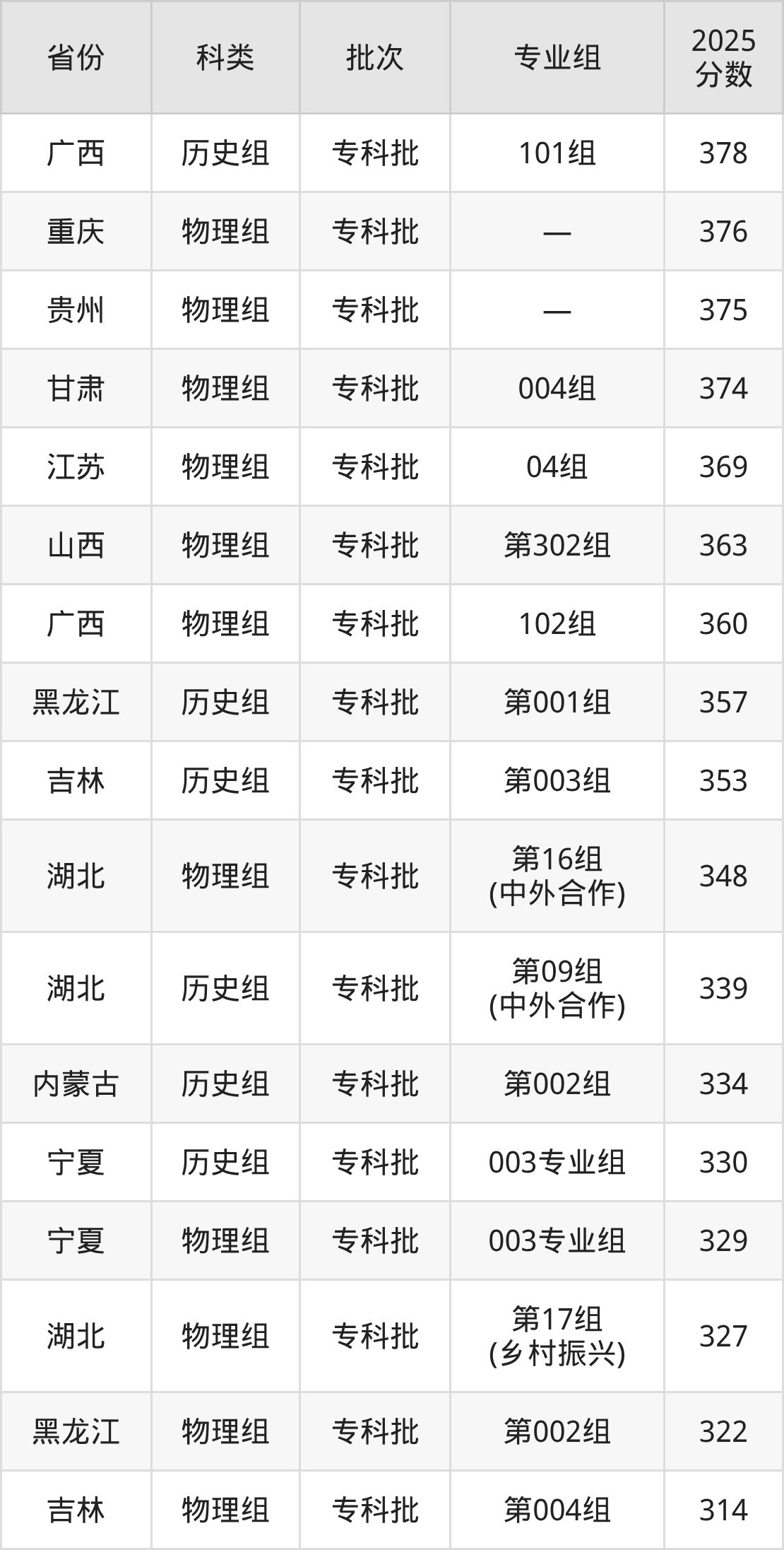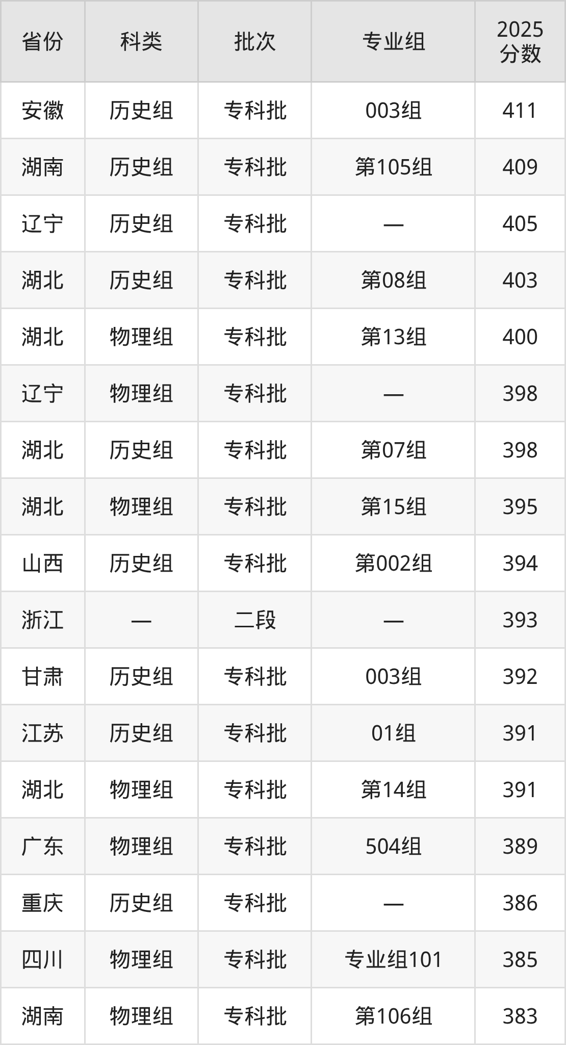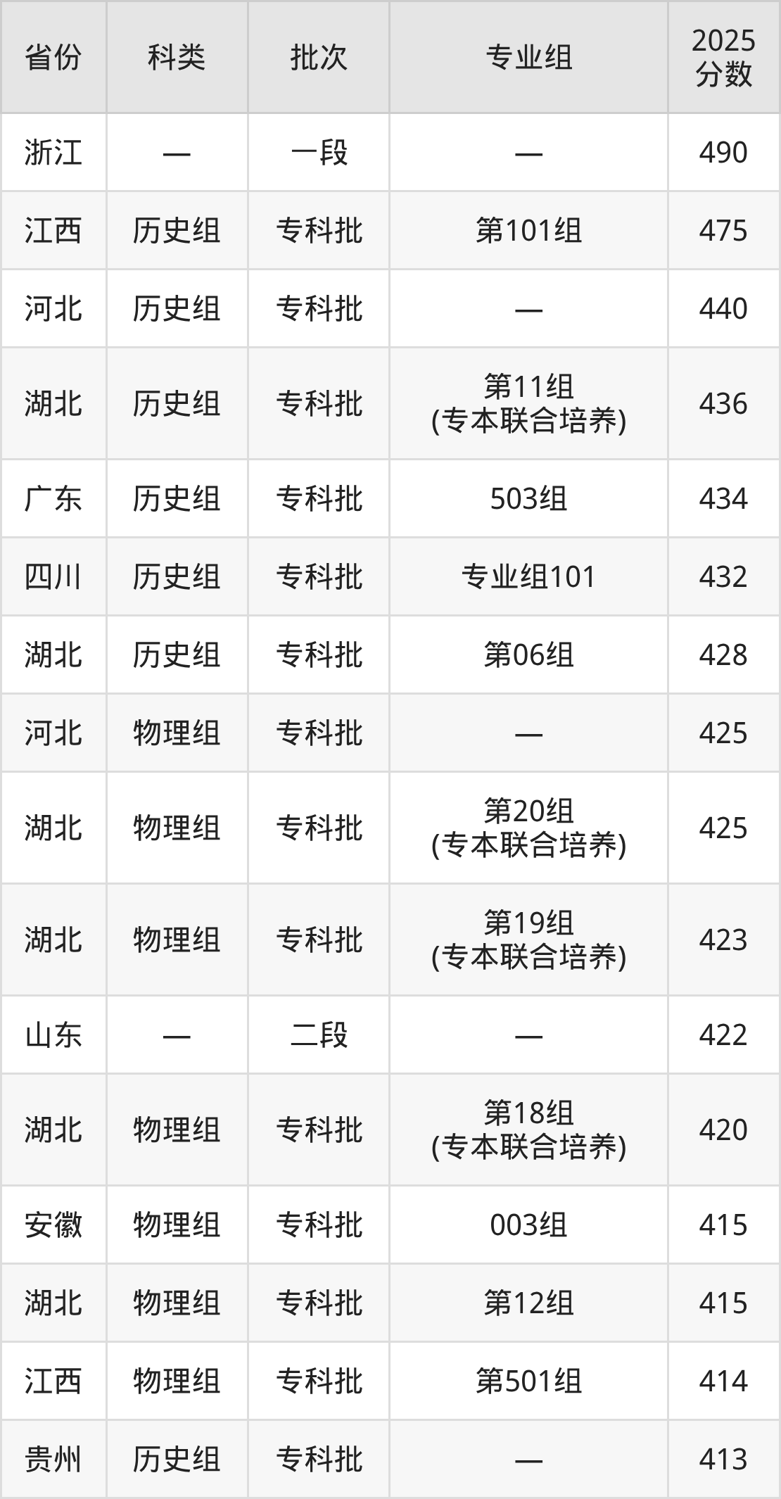 而浙江地区考生的分数门槛最高,2025年武汉交通职业学院在浙江招生最低分为490分,考生至少要超一段线0分才有可能被录取。