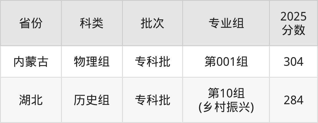 2025年武汉交通职业学院在全国普通批次招生的录取分数范围位于284~490分之间,其中省内分数范围为284分~436分,历史组最低分专业组为“第10组(乡村振兴)”,考生284分即可报考,物理组最低分专业组为“第17组(乡村振兴)”,考生327分即可报考。