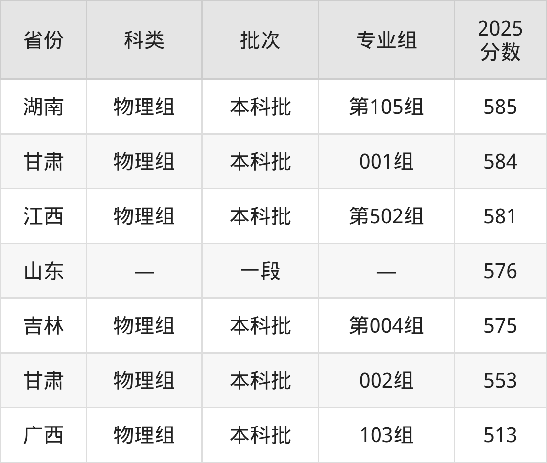 而安徽地区物理组考生的分数门槛最高,2025年中国人民解放军空军军医大学001组在安徽招生最低分为622分,考生至少要超本科线161分才有可能被录取。