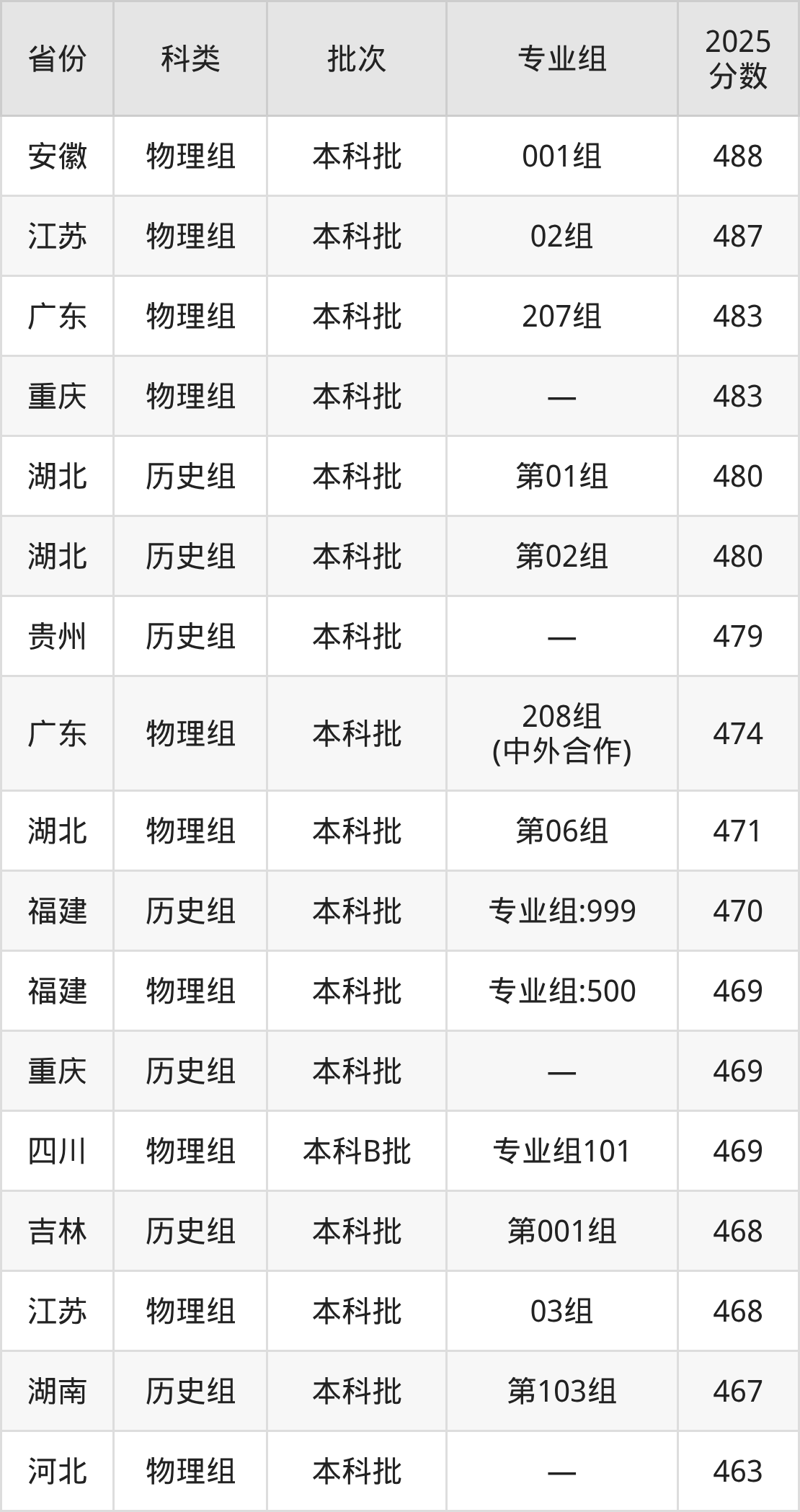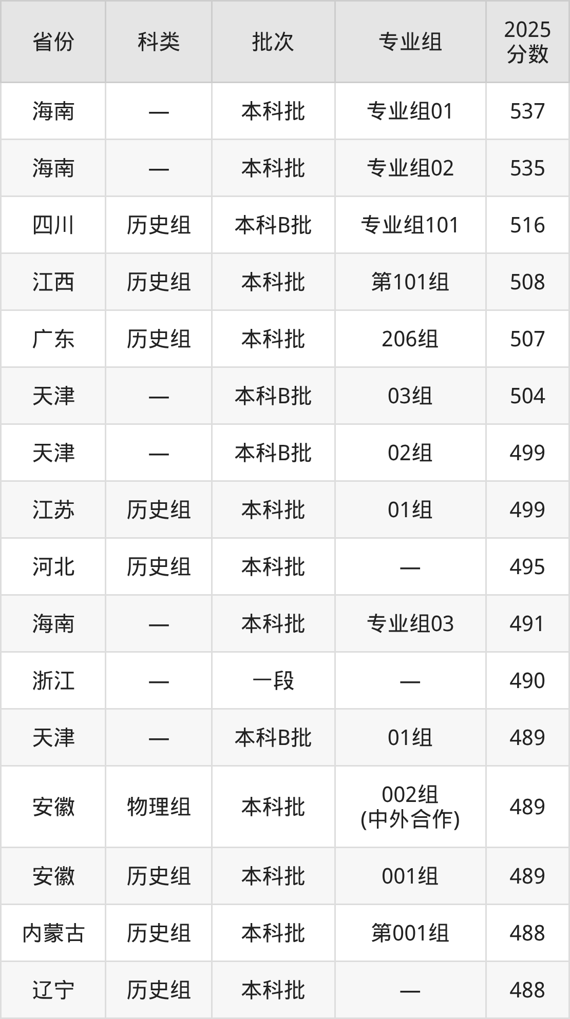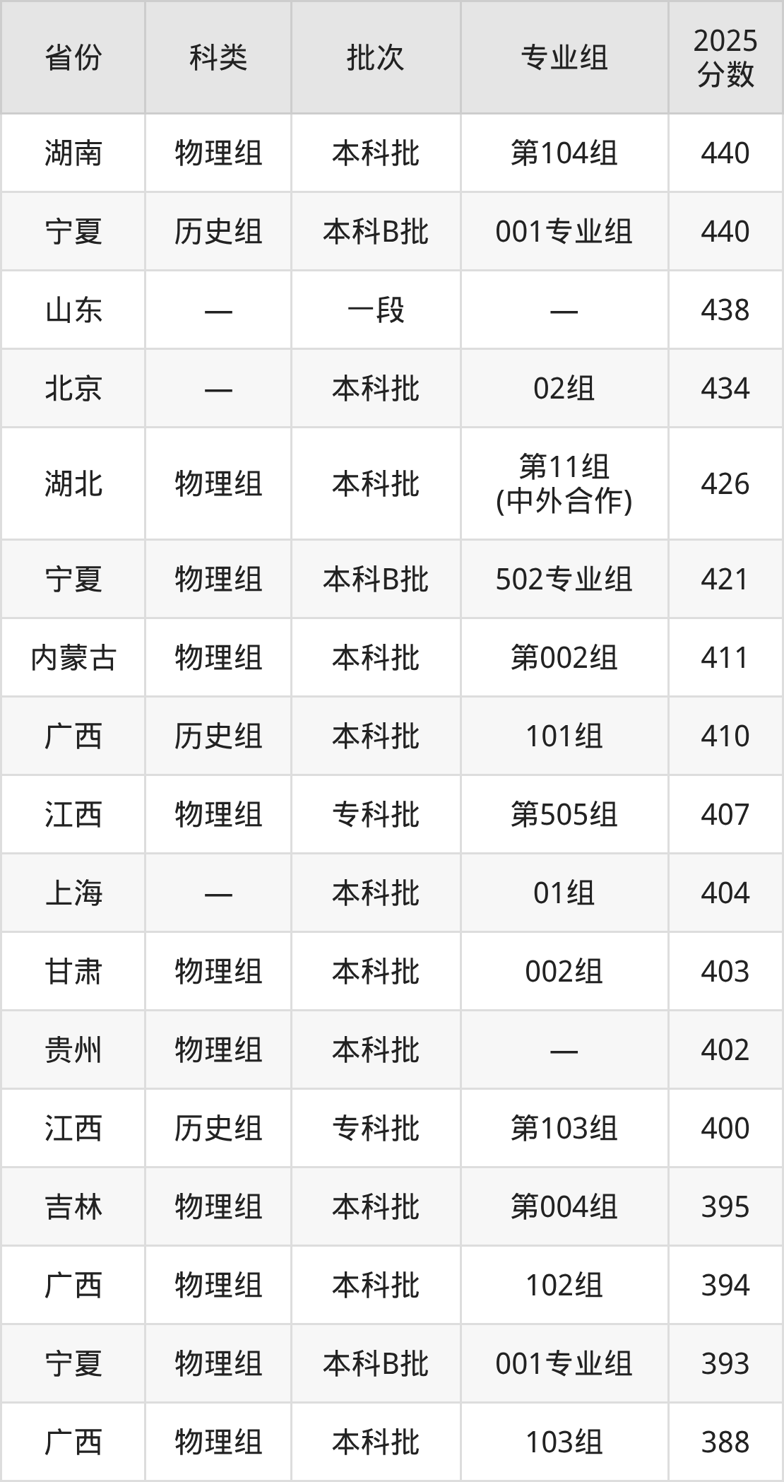 而海南地区考生的分数门槛最高,2025年武昌理工学院专业组01在海南招生最低分为537分,考生至少要超本科线57分才有可能被录取。