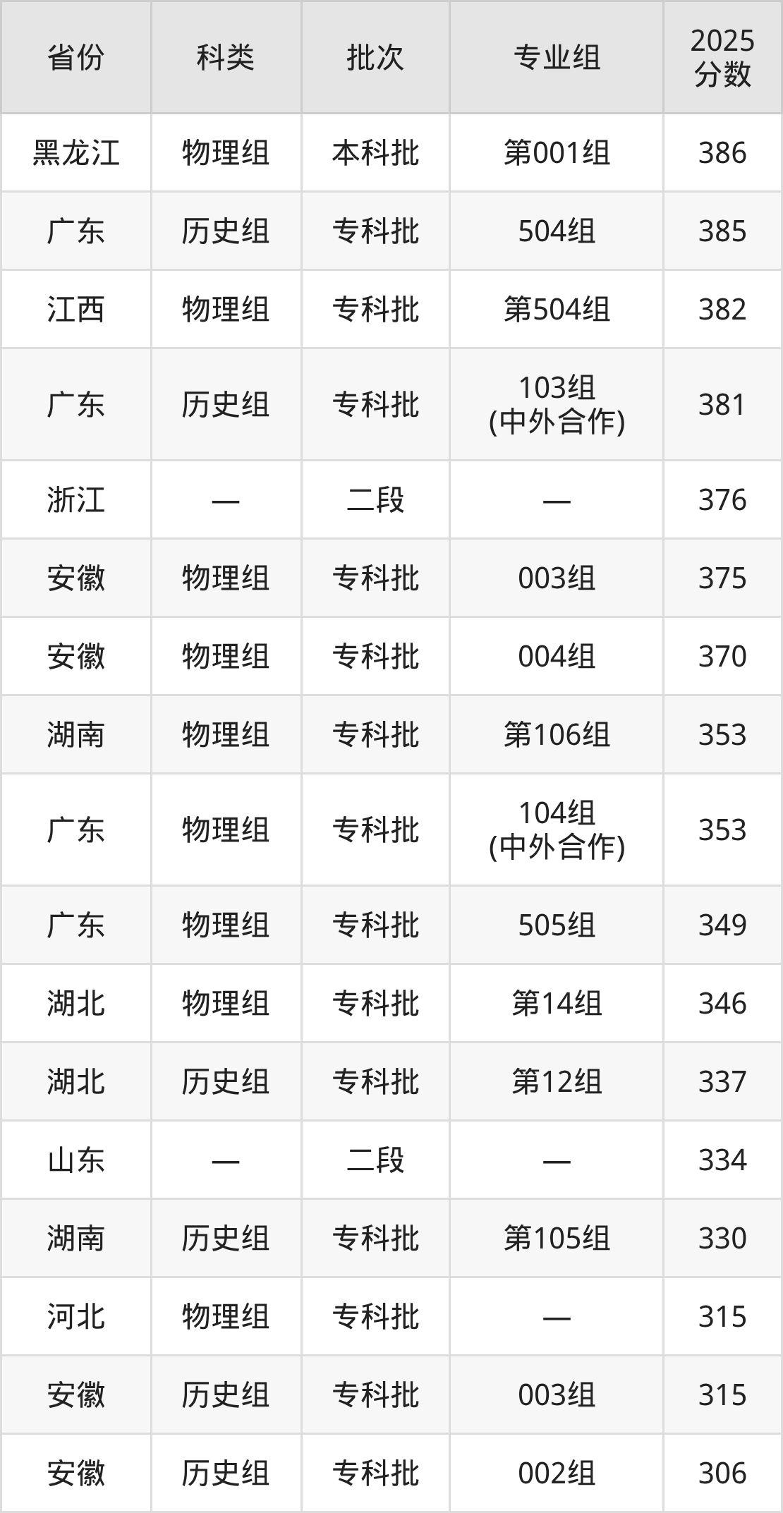 武昌理工学院2026年录取分数需在高招结束官方数据公布后更新,2026届有意向报考该校的同学,可以在填报志愿时参考武昌理工学院2025年录取分数线: