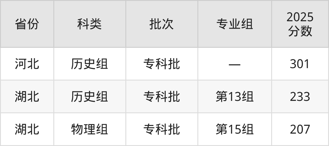 2025年武昌理工学院在全国普通批次招生的录取分数范围位于207~537分之间,其中省内分数范围为207分~480分,历史组最低分专业组为“第13组”,考生233分即可报考,物理组最低分专业组为“第15组”,考生207分即可报考。