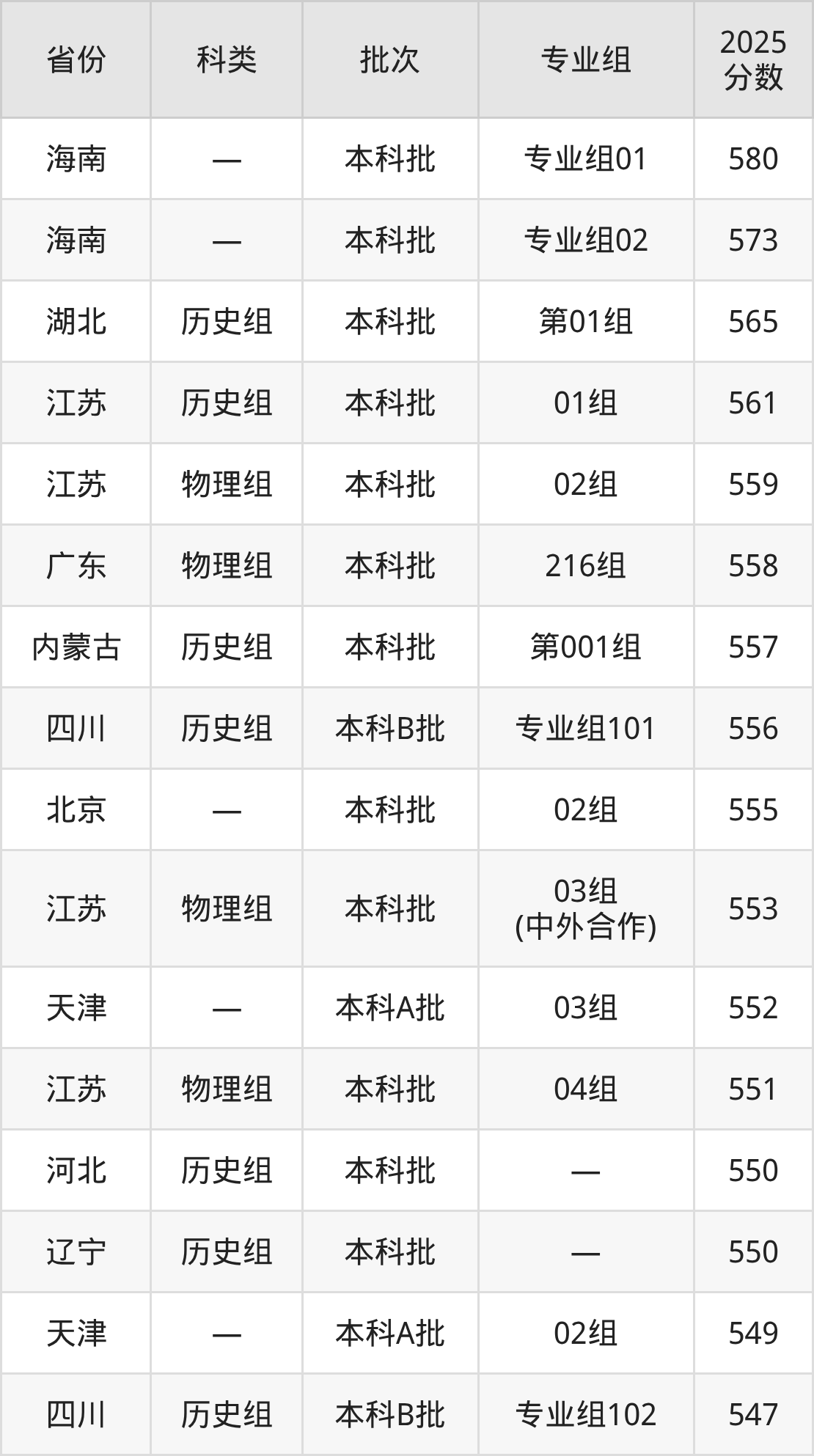 而海南地区考生的分数门槛最高,2025年河南科技大学专业组01在海南招生最低分为580分,考生至少要超本科线100分才有可能被录取。